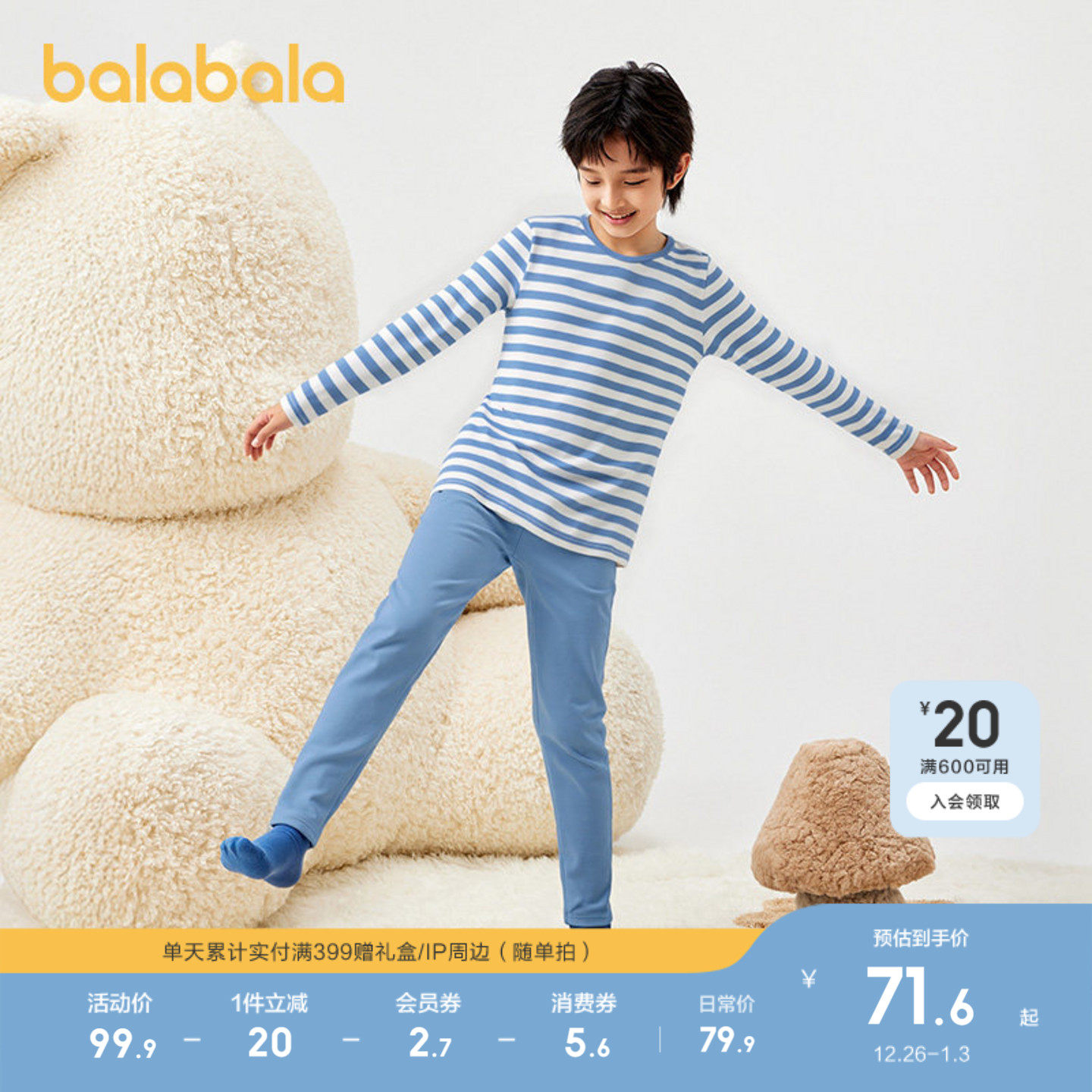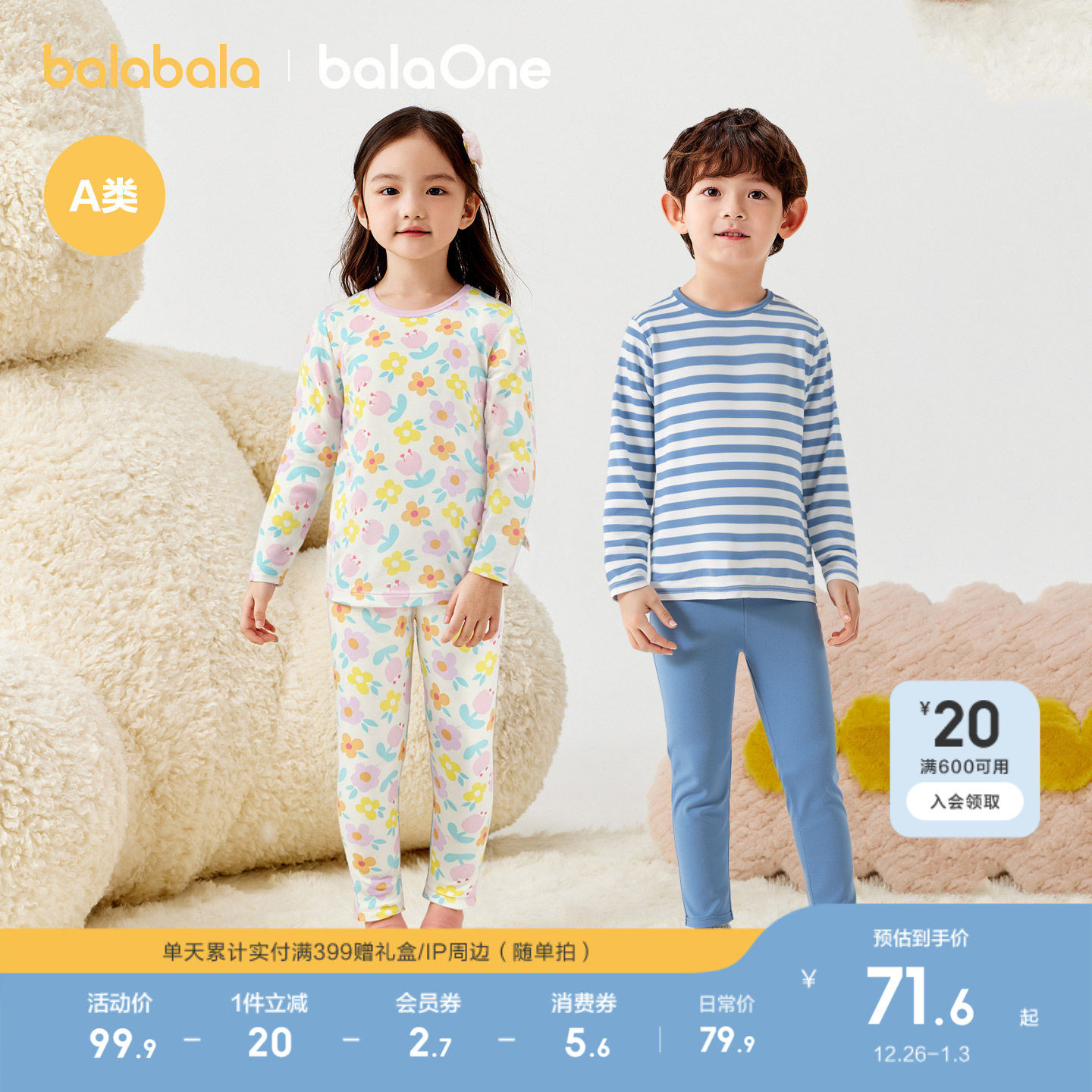 【balaOne】巴拉巴拉宝宝秋衣秋裤套装秋季儿童内衣男童女童打底