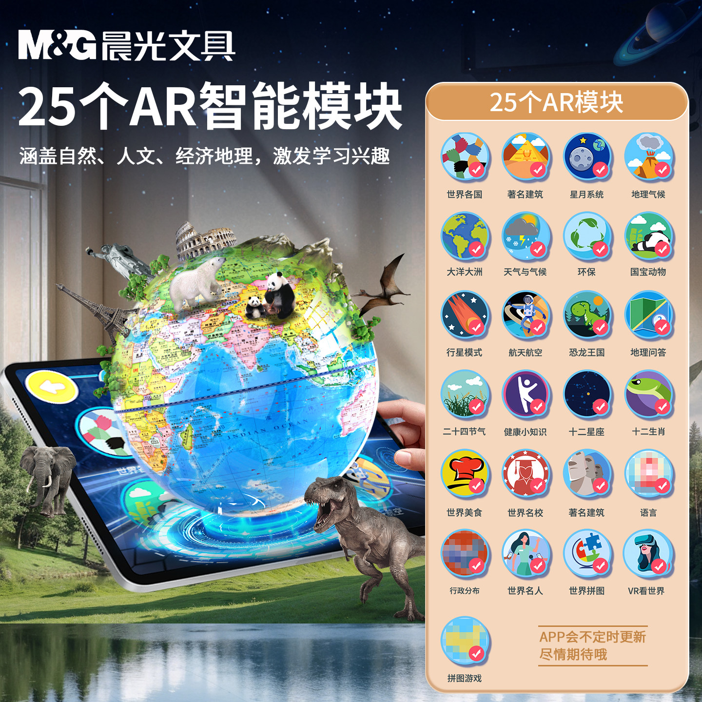 晨光ar地球仪正版小学高初中生专用儿童节礼物启蒙智能特大号3d立体悬浮凹凸教学官方旗舰店客厅摆件