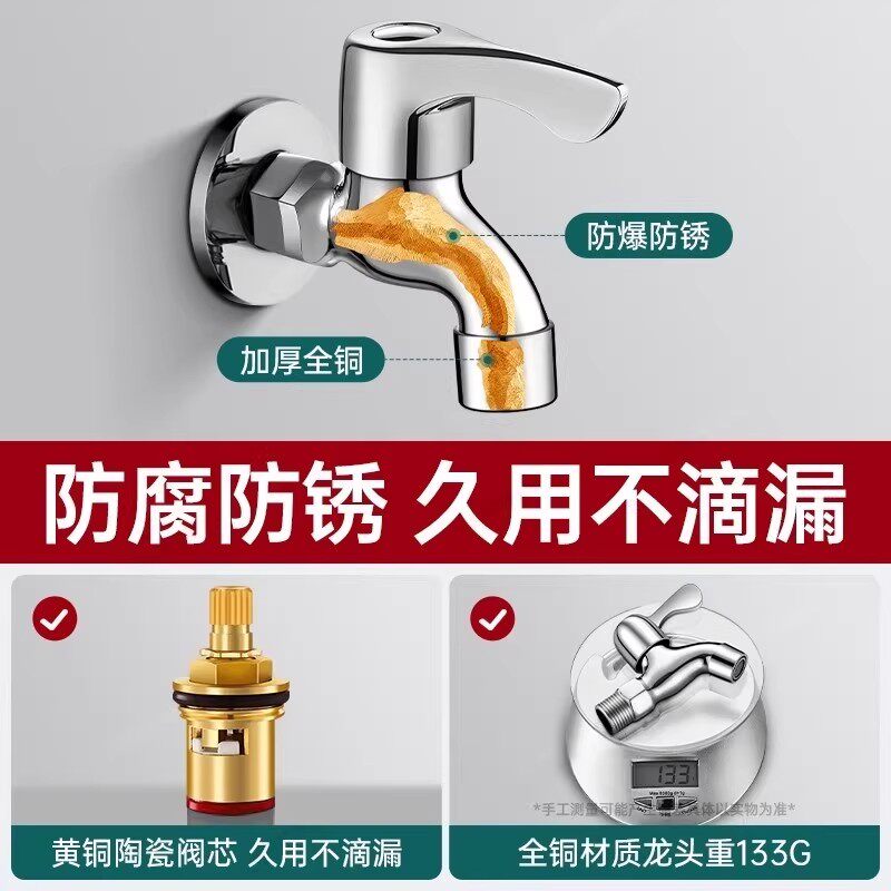 全铜水龙头正品家用单冷阳台洗衣机拖把池专用自来水户外防冻龙头