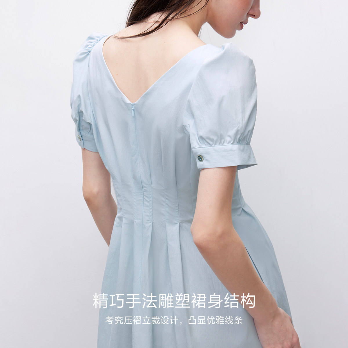 显瘦V字衣领,微茧裙身包容性强