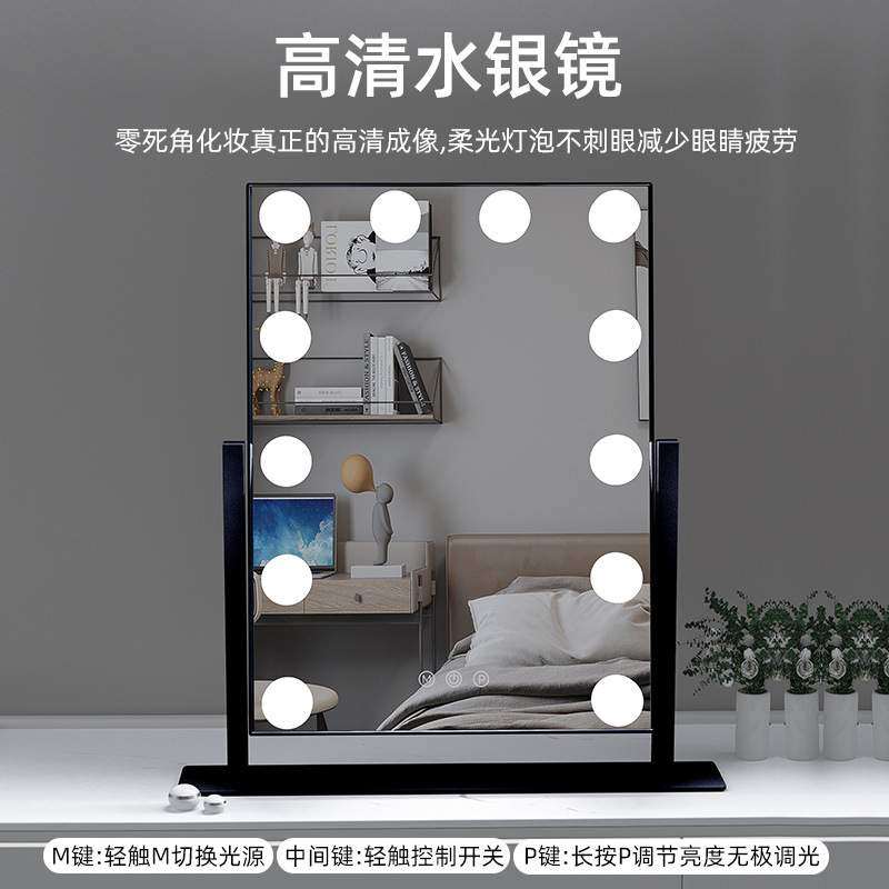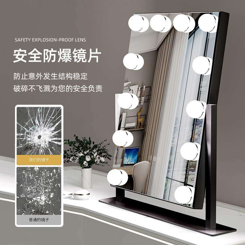 化妆镜带灯led灯泡台式桌面梳妆镜智能触控专用化妆师镜子美妆镜