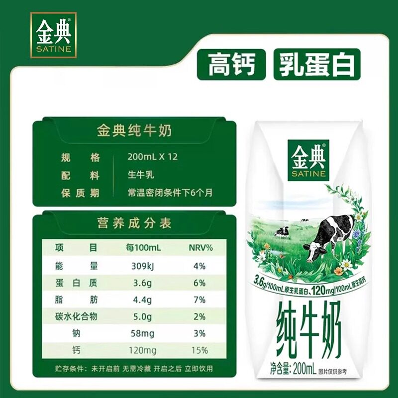 伊利金典纯牛奶200ml*12盒/箱250ml儿童成人营养原生高钙早餐牛奶