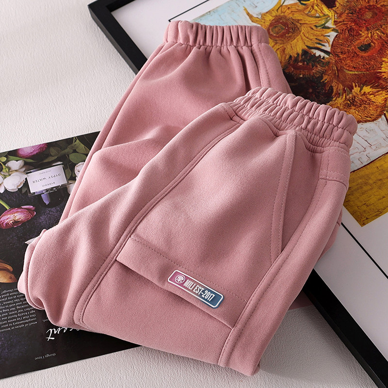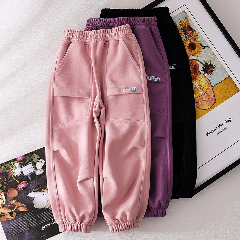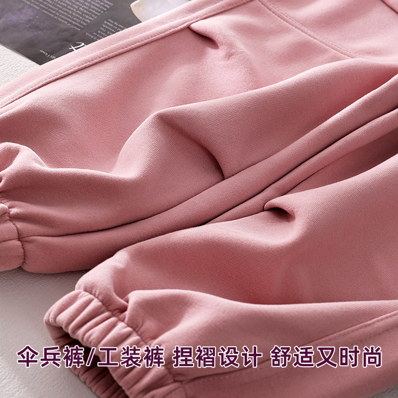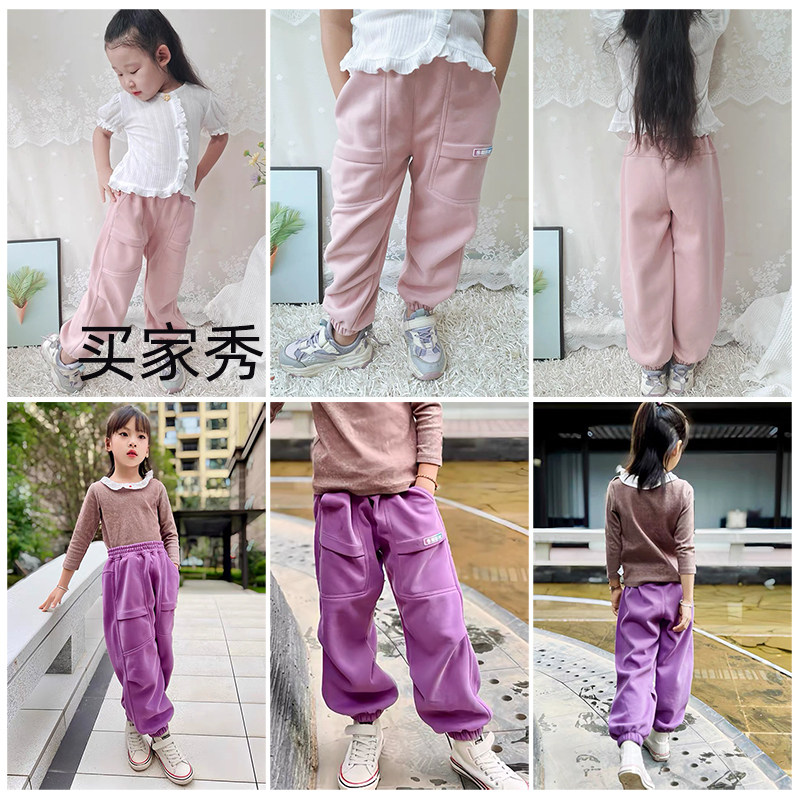 女童裤子秋冬款洋气童装儿童加厚一体绒工装裤中大童长裤运动卫裤