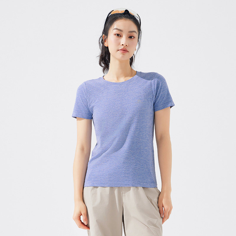 拓路者无缝一体织T恤瑜伽服短袖女夏季圆领高弹透气运动跑步上衣