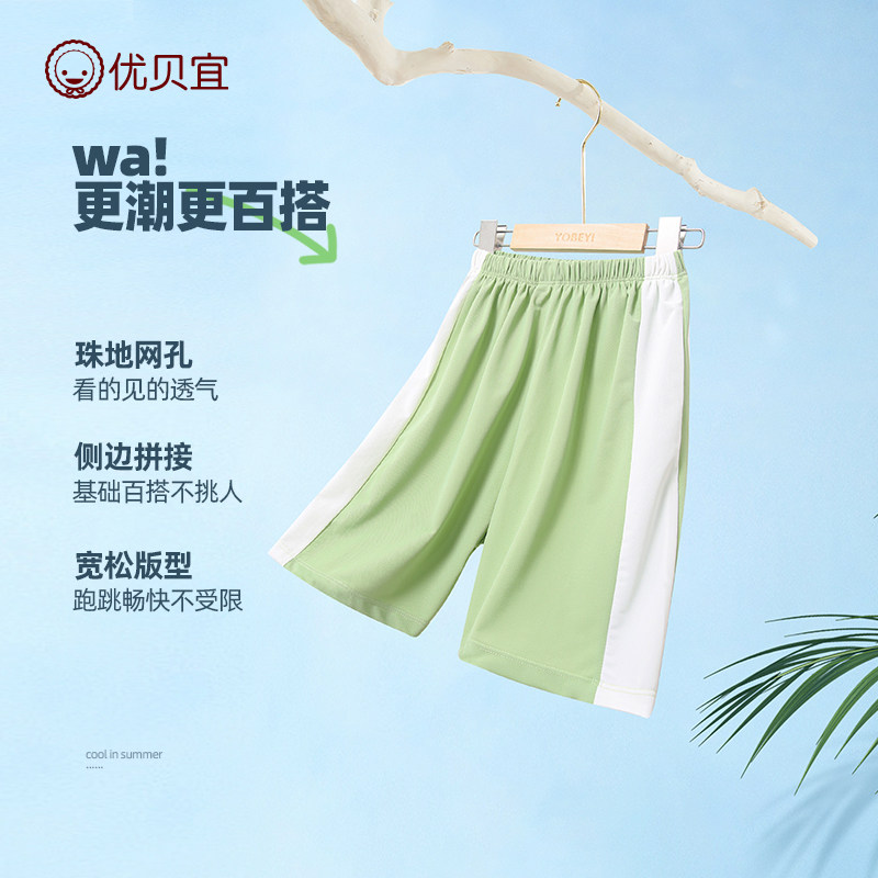 【速干凉感】优贝宜儿童短裤运动裤夏季男童薄裤子女童中大童宽松