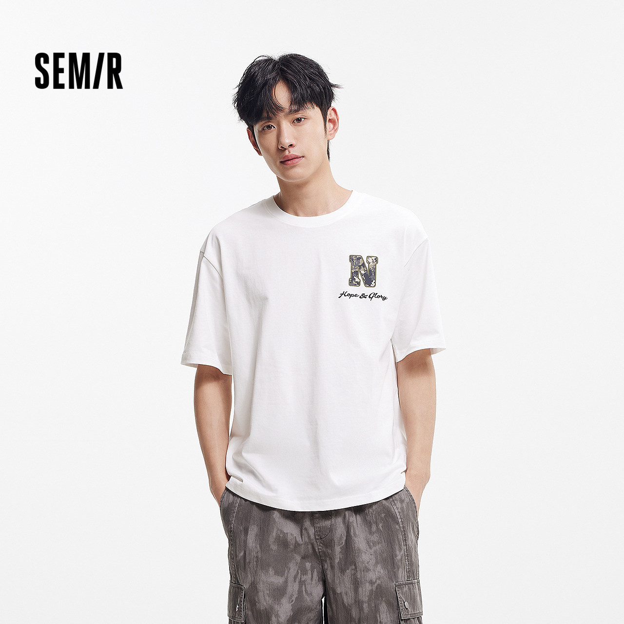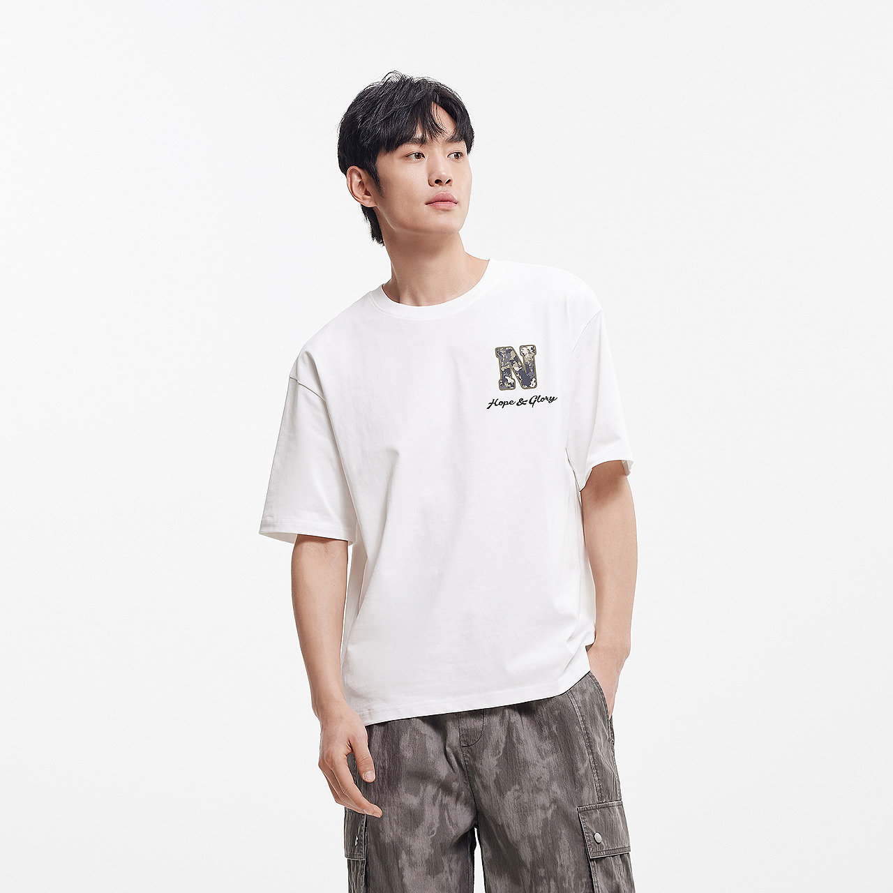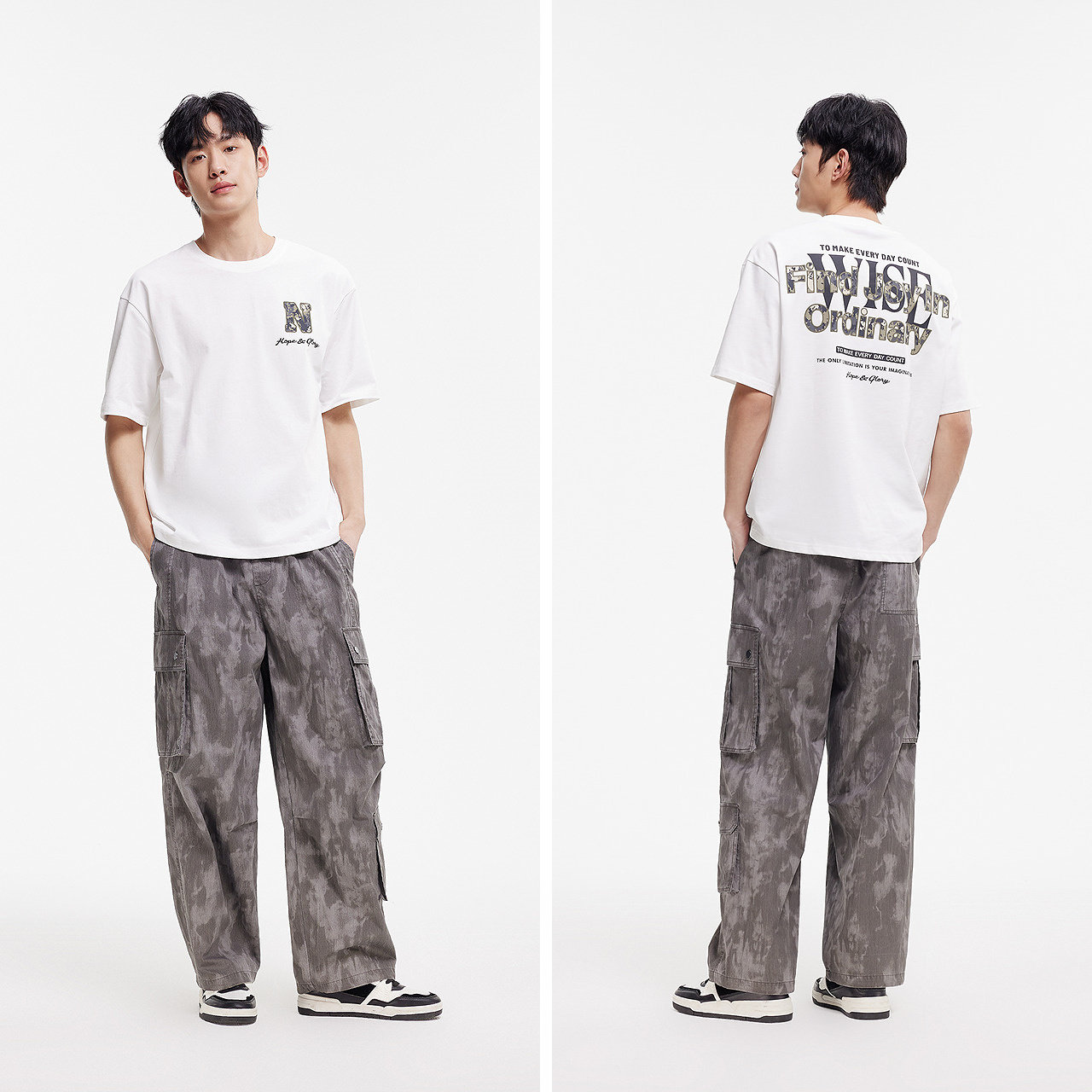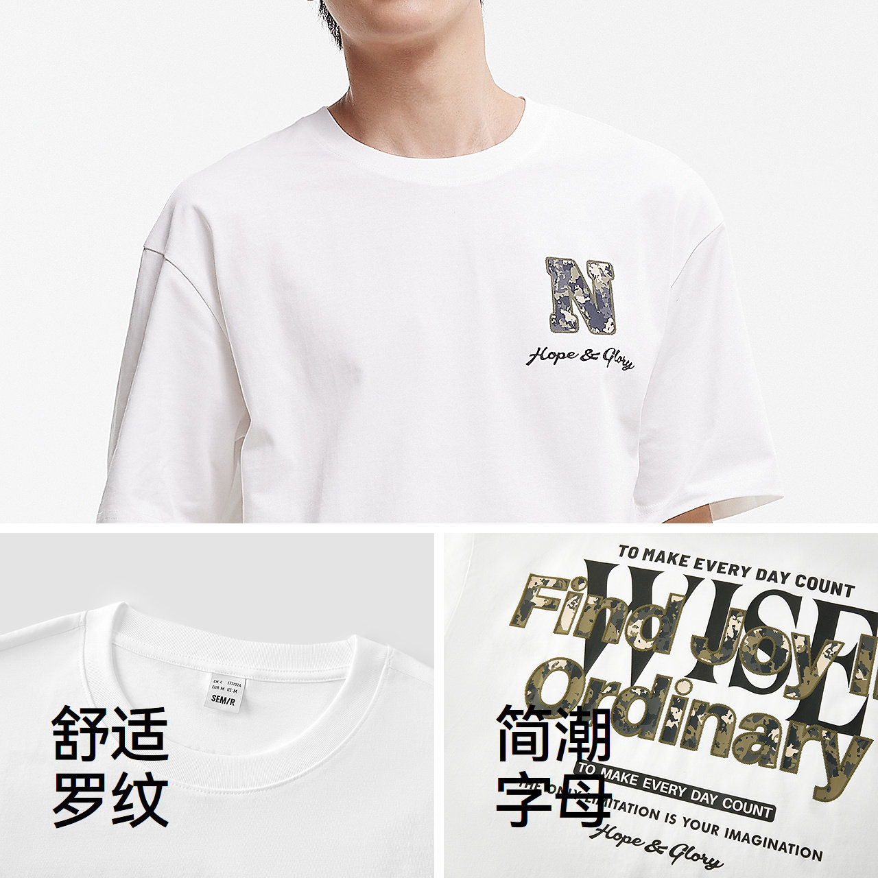 森马短袖T恤男夏季迷彩印花字母针织衫户外潮流内搭宽松圆领上衣