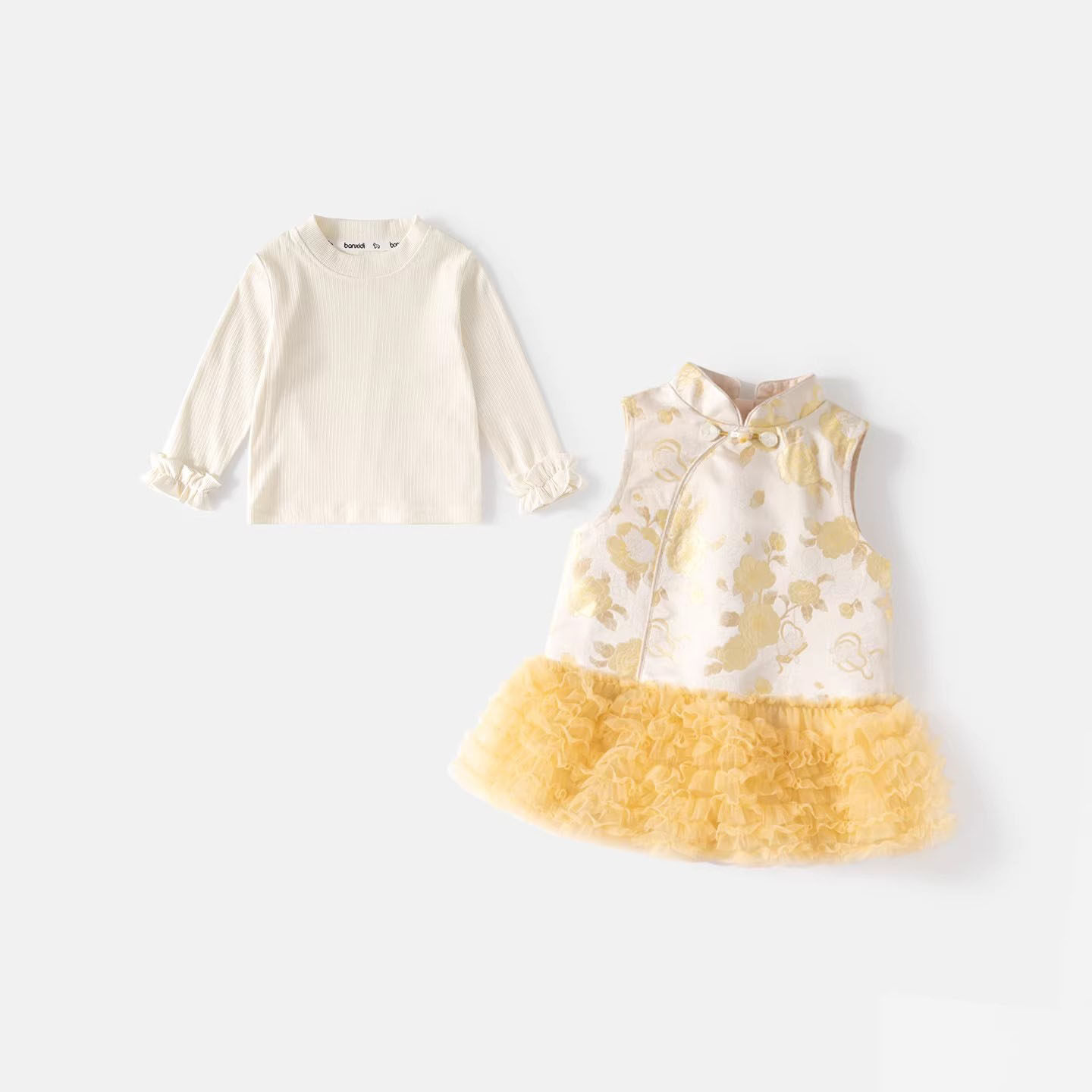 新年班喜迪女童连衣裙春装2026年新中式网纱裙宝宝周岁礼服旗袍裙