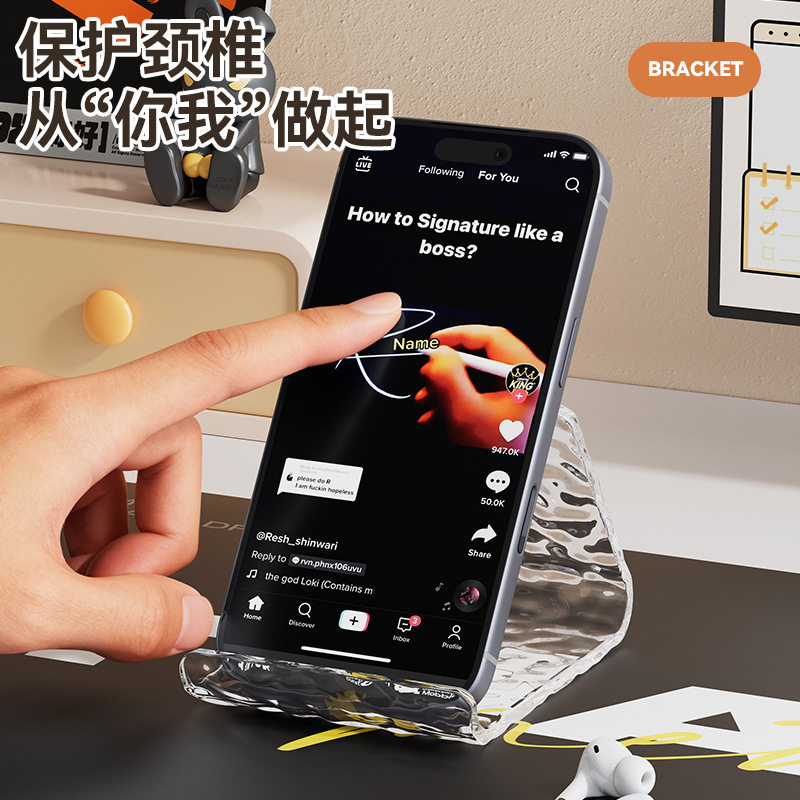 创意亚克力手机支架便携办公室桌面摆件家用看电视手机平板支撑架