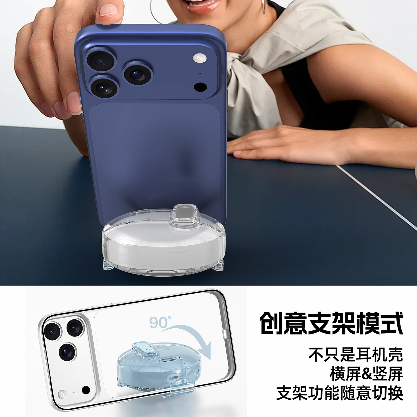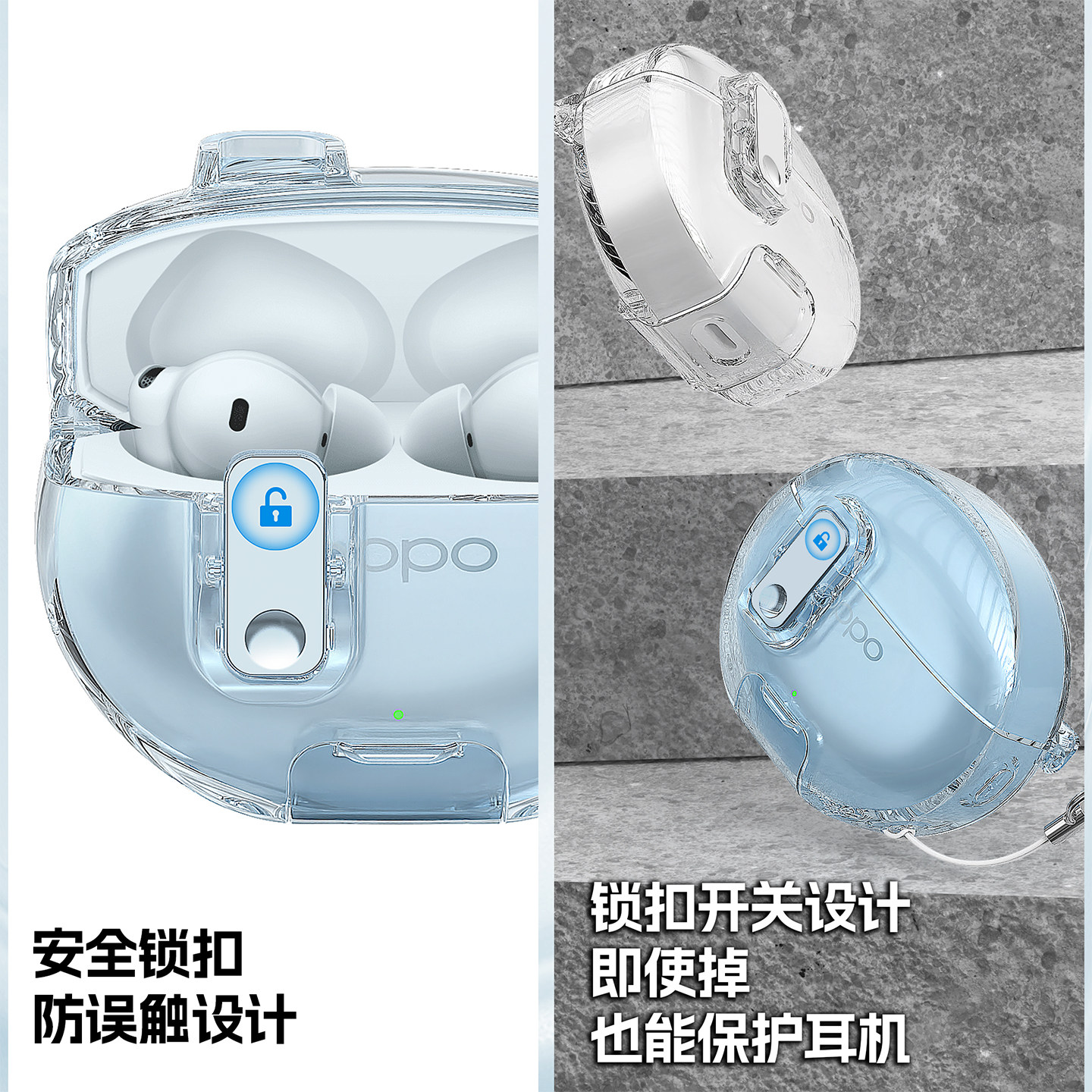 适用于oppoencefree4保护套free4蓝牙耳机保护壳秒变手机支架原创设计创意锁扣开关连体新款透明外壳防摔软壳