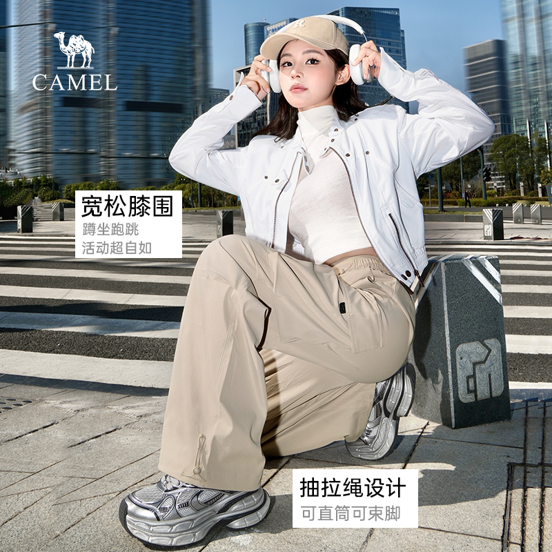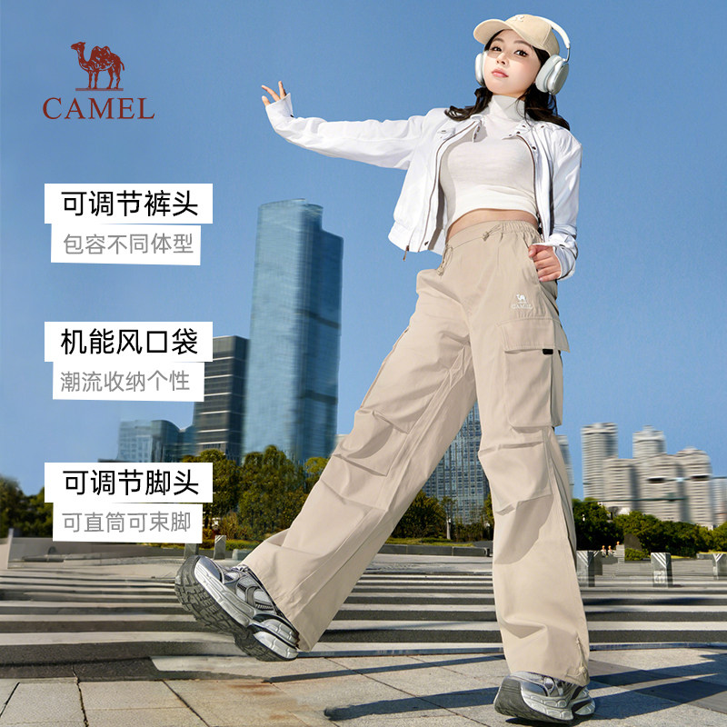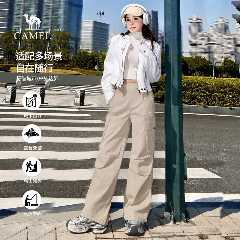 骆驼山海工装裤女装2026春季宽松直筒防水冲锋裤休闲运动裤登山裤