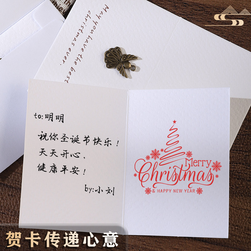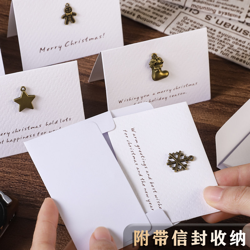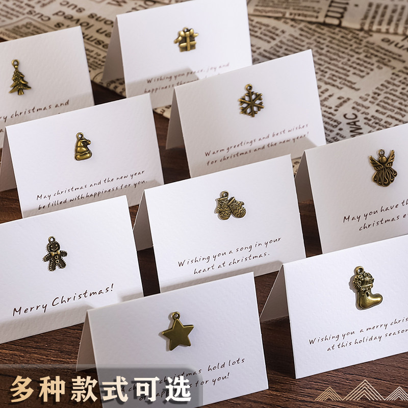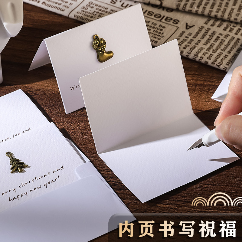 金属饰件生日祝福贺卡ins风复古小卡片纸礼物礼品留言卡带信封diy手写折叠父亲节老师元旦新年圣诞节节日贺卡