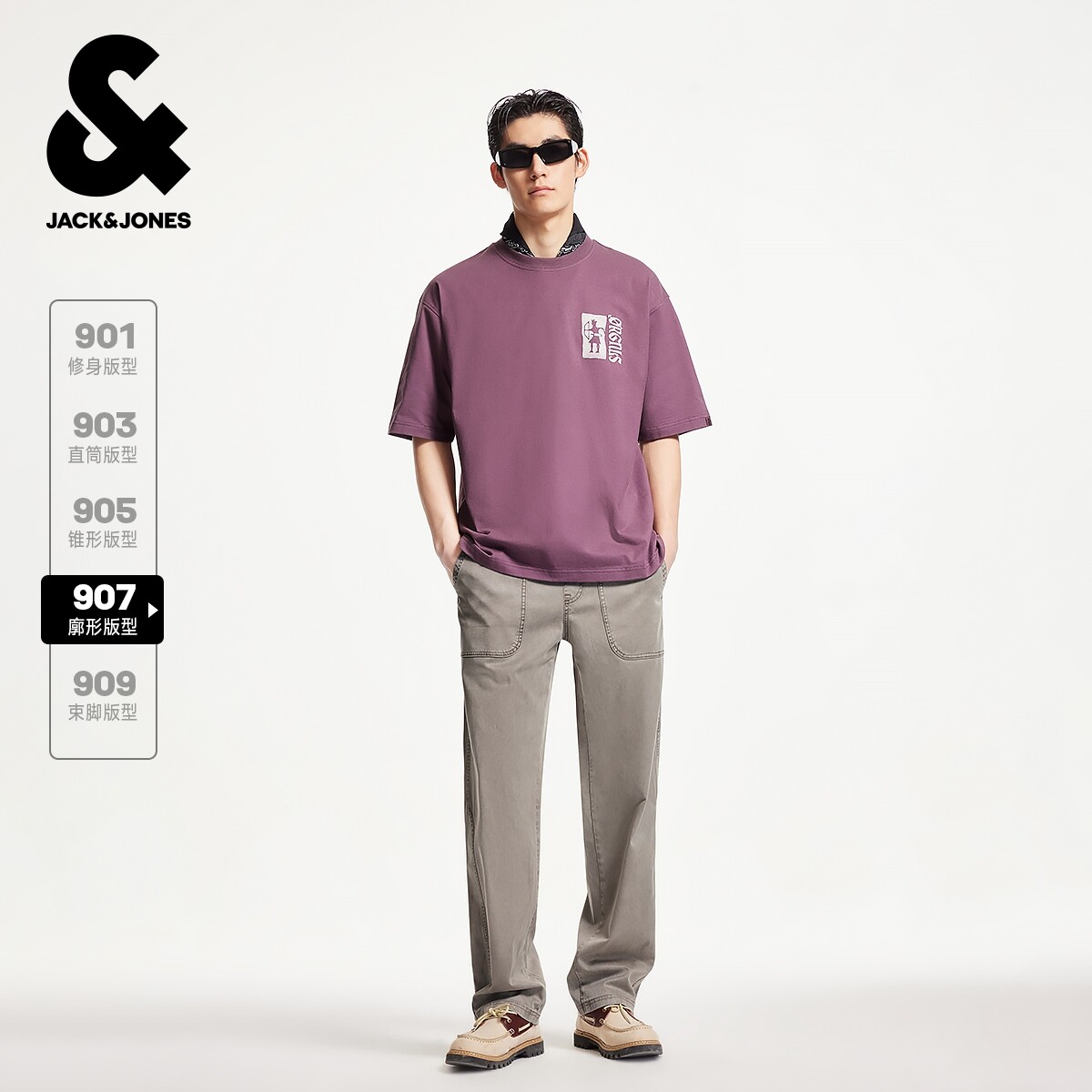 杰克琼斯春秋新款时尚潮百搭水洗廓形松紧腰头长裤牛仔裤裤子男装