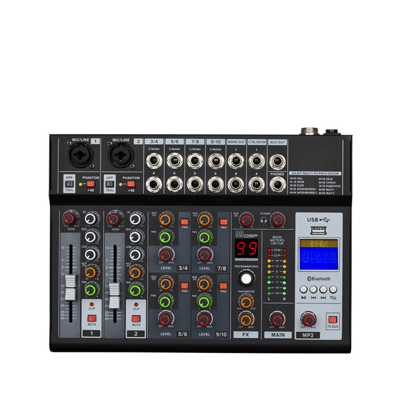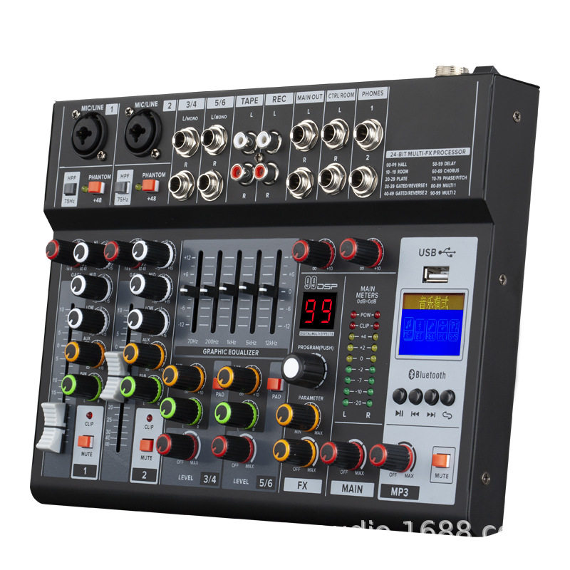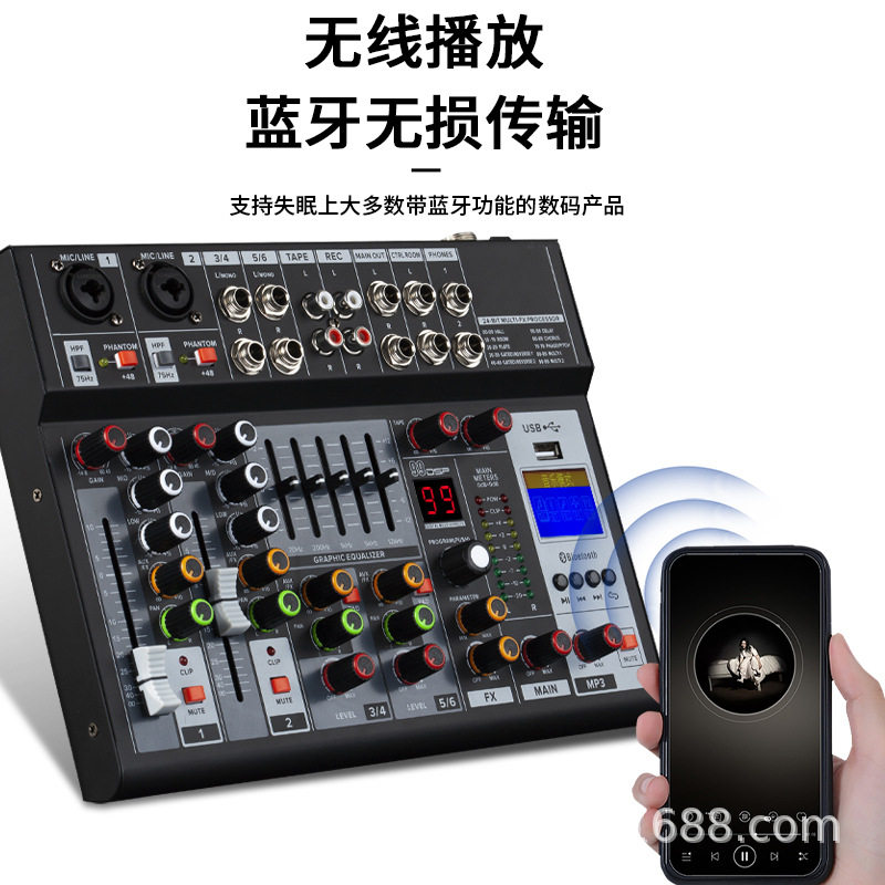 新款 厂家直销专业混音器内置声卡蓝牙USB演出家用K歌6路调音台