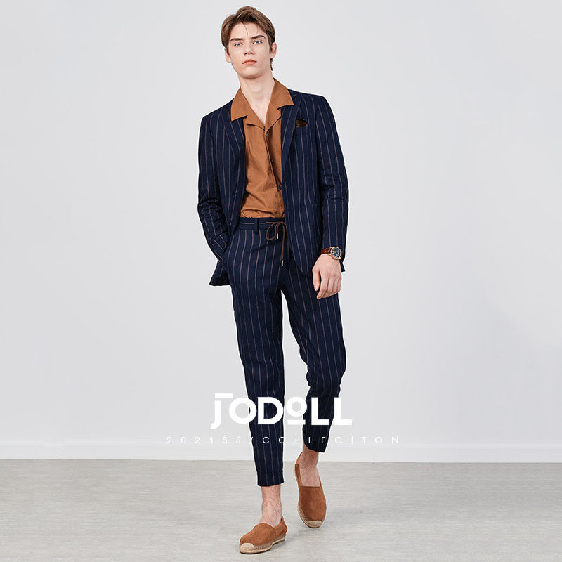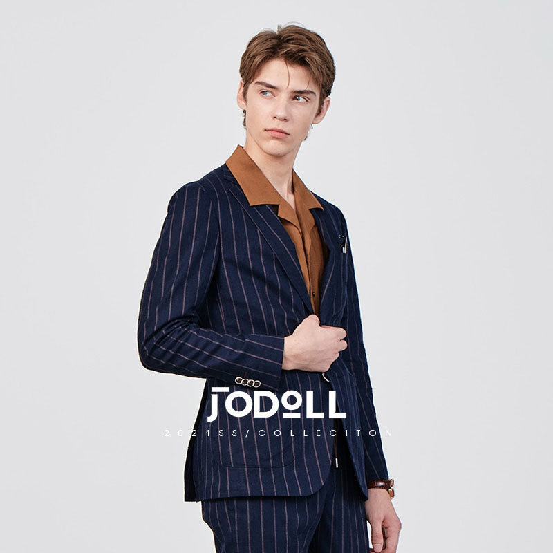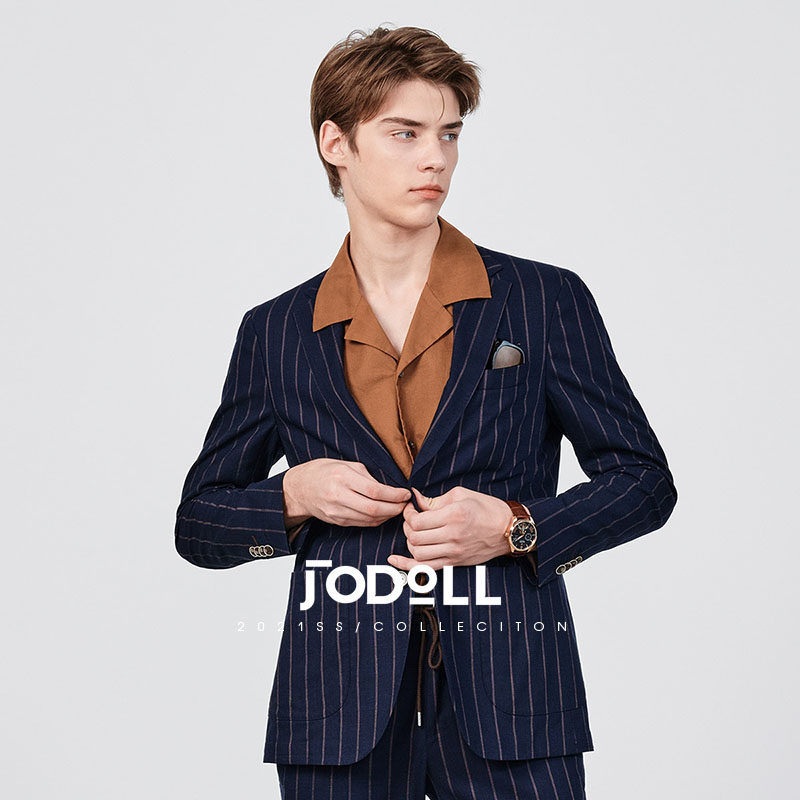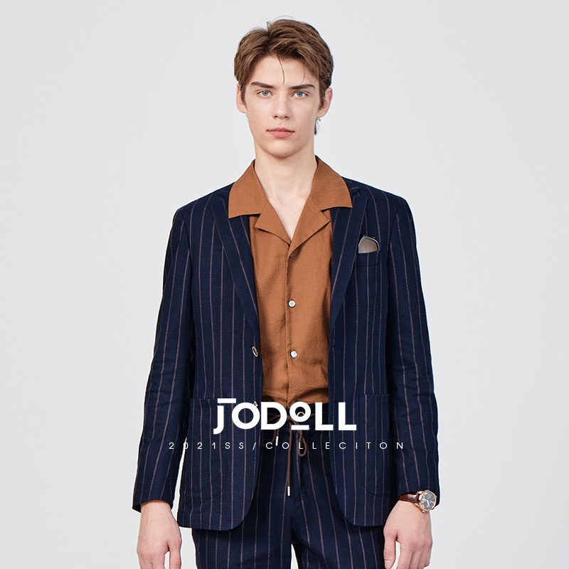 JODOLL乔顿韩版潮流条纹西服套装上衣男商务修身棉麻西服外套