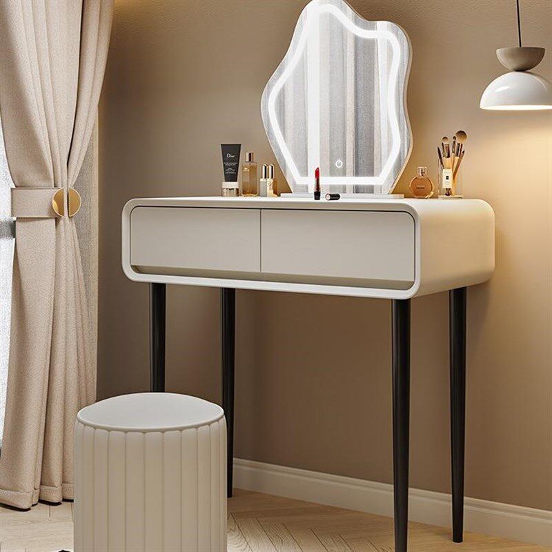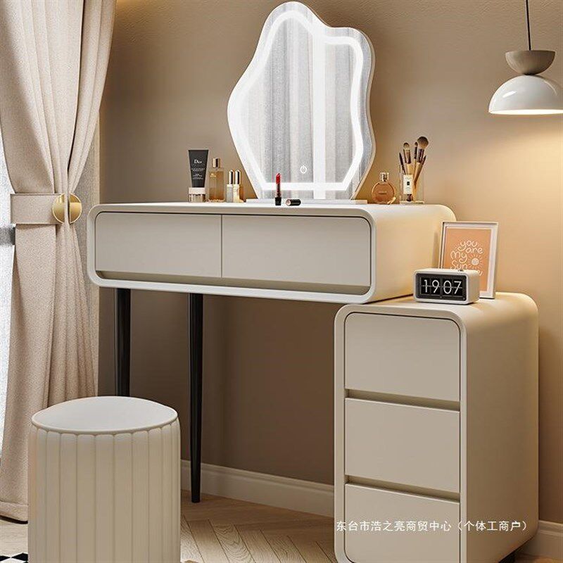 床笠床笠奶油风实 木主卧梳妆 台卧室现代简约化妆 台斗柜伸缩一