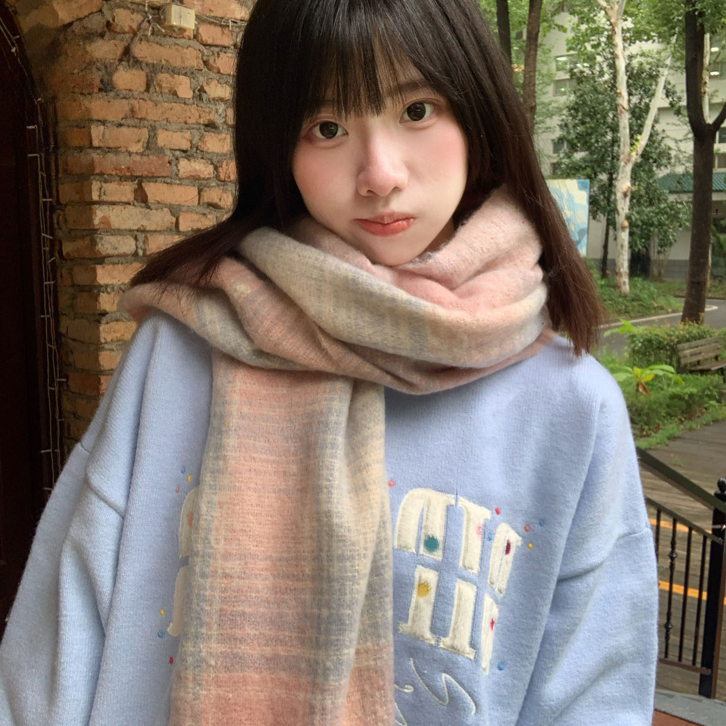 稻草人围巾女2025新款韩版格子围巾加厚氛围感百搭保暖披肩围脖男