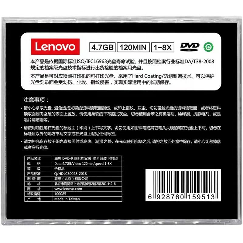 联想(Lenovo)dvd- r 4.7GB档案级刻录盘可打印单片装