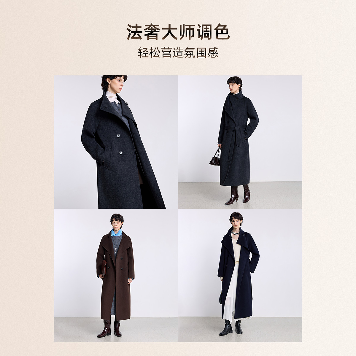 【大师法奢】烟囱领大衣LILY毛呢外套女2025冬季新款双面绵羊毛长