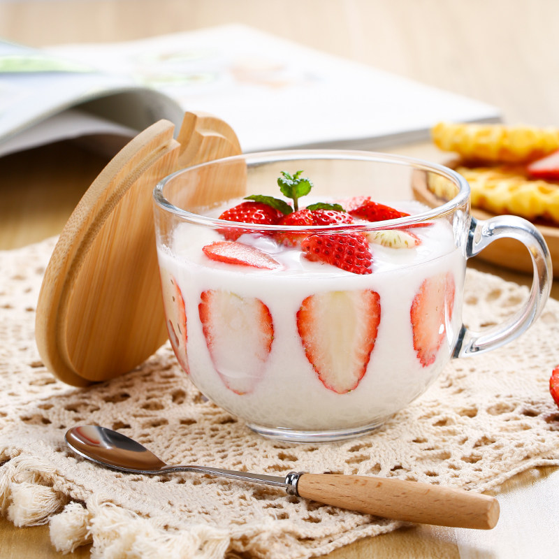 玻璃杯牛奶杯早餐杯家用水杯大容量带盖勺咖啡杯女高硼硅喝水燕麦