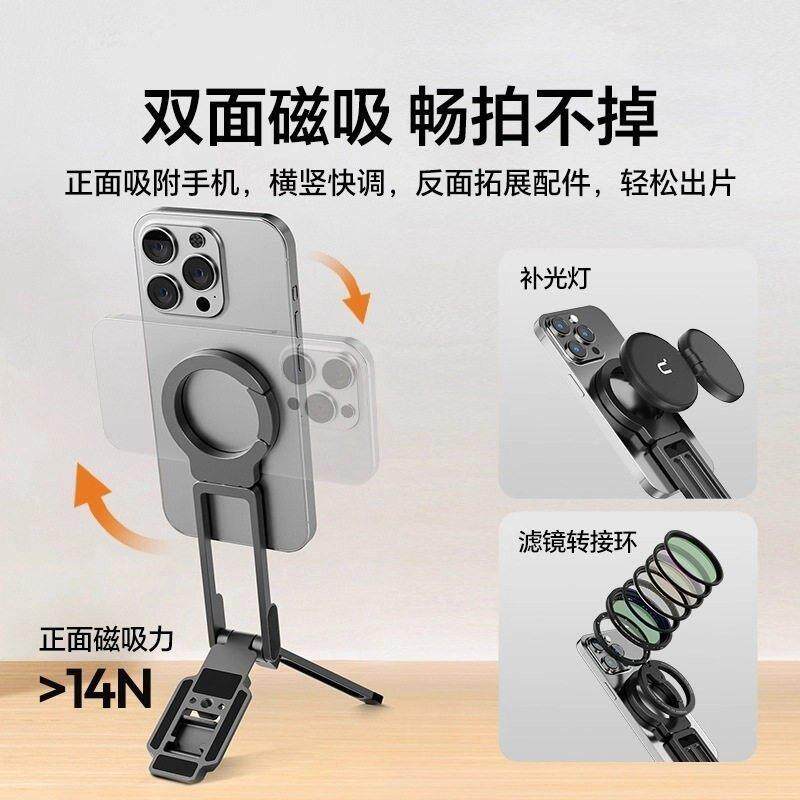 新款旅行磁吸手机支架登山扣便携式旋转三脚架自拍神器