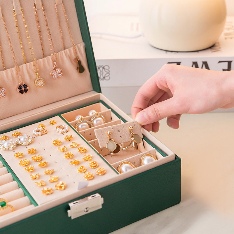 首饰收纳盒大容量精致绒布整理盒耳环耳钉戒指手镯项链防氧化盒