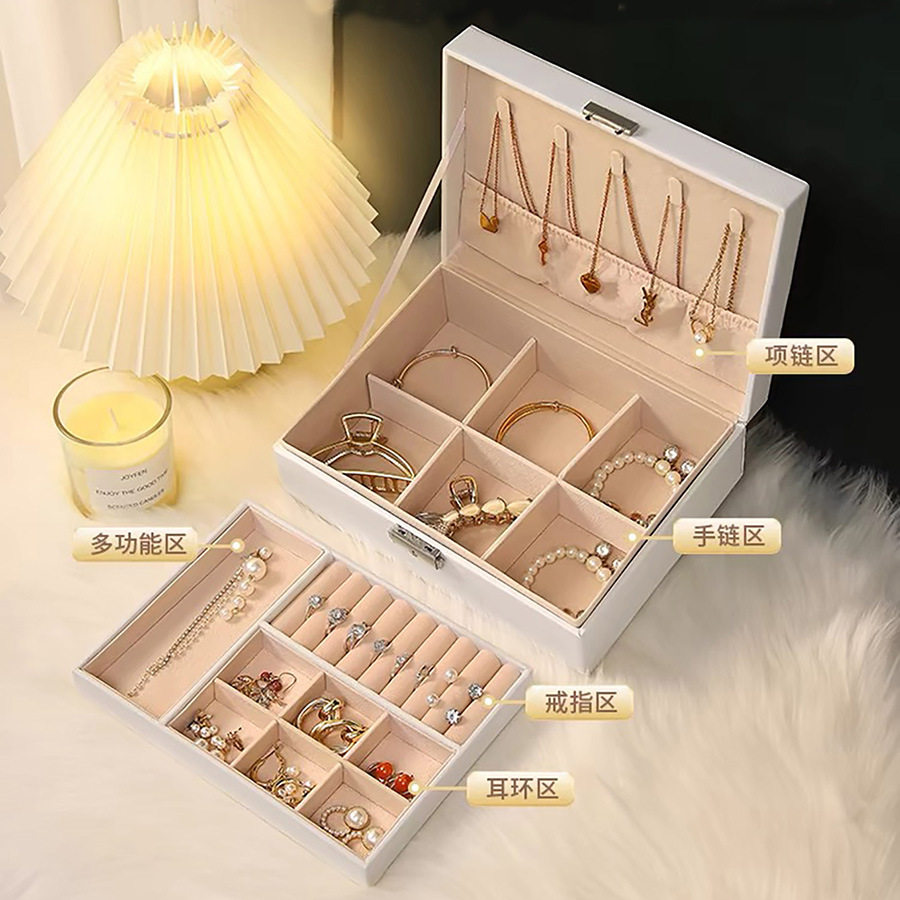 首饰盒耳钉耳环项链收纳盒高档精致小型便携发饰品收纳分格防氧化