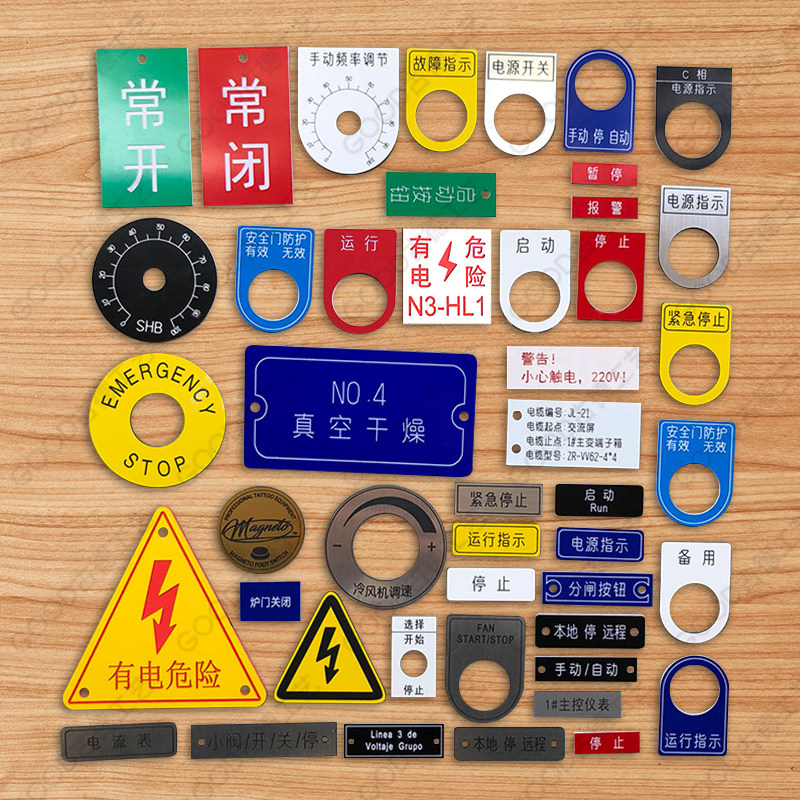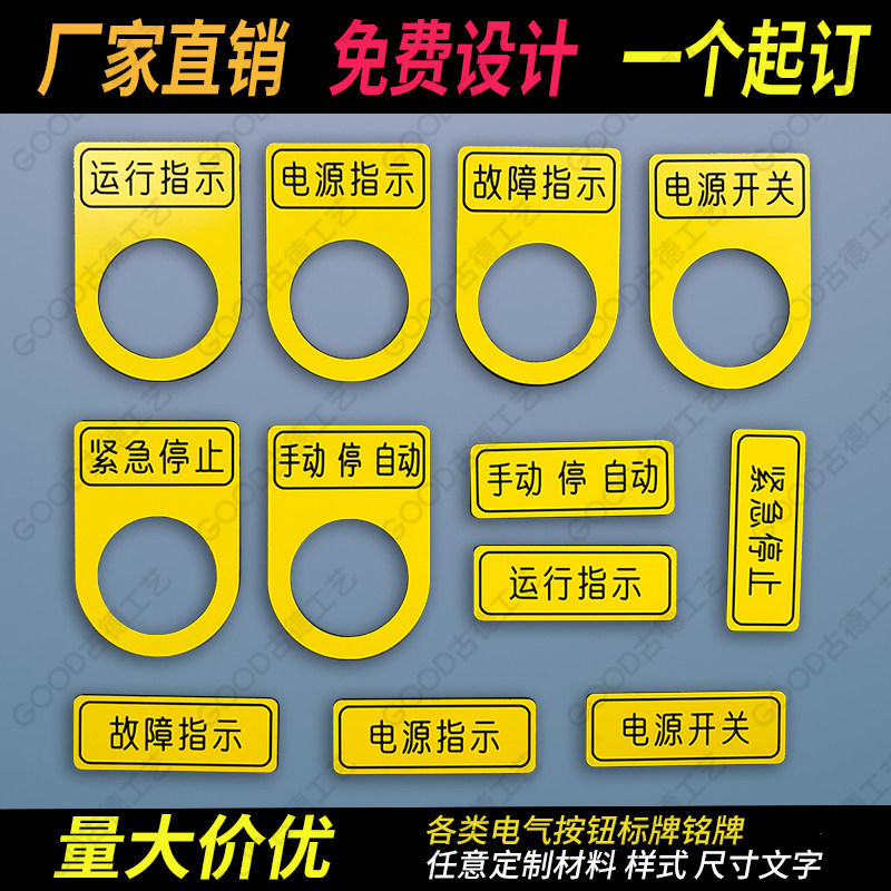 电气标牌定做按钮灯标牌配电柜铭牌亚克力双色板雕刻设备标识标签