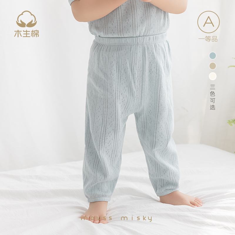 木生棉男女宝宝夏季长裤外出防蚊休闲裤婴儿纯棉透气薄款外穿裤子