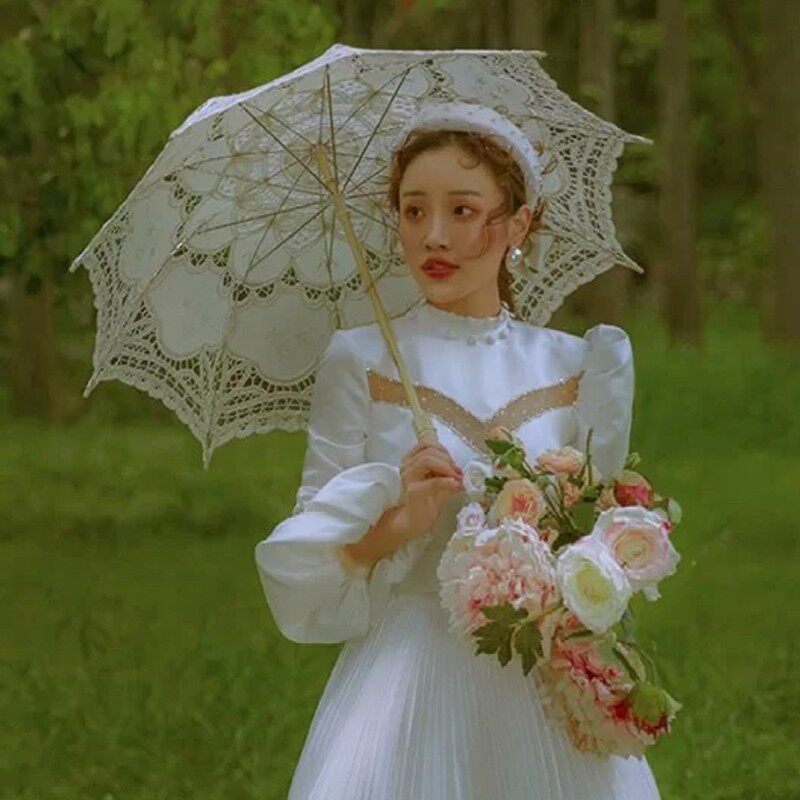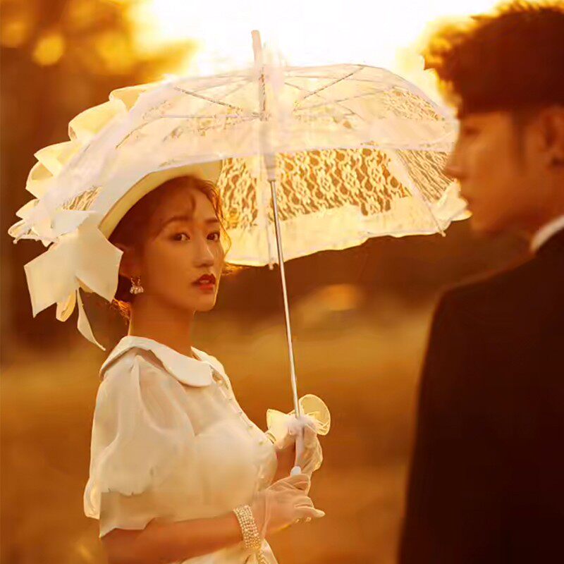 法式婚纱摄影道具外景街拍旅拍照相新娘婚礼刺绣蕾丝伞太阳伞洋伞