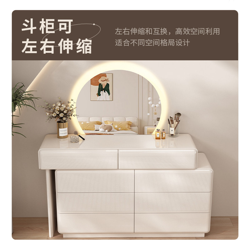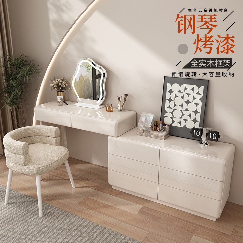 奶油风烤漆实木梳妆台卧室现代简约高级感化妆桌2025新款斗柜一体