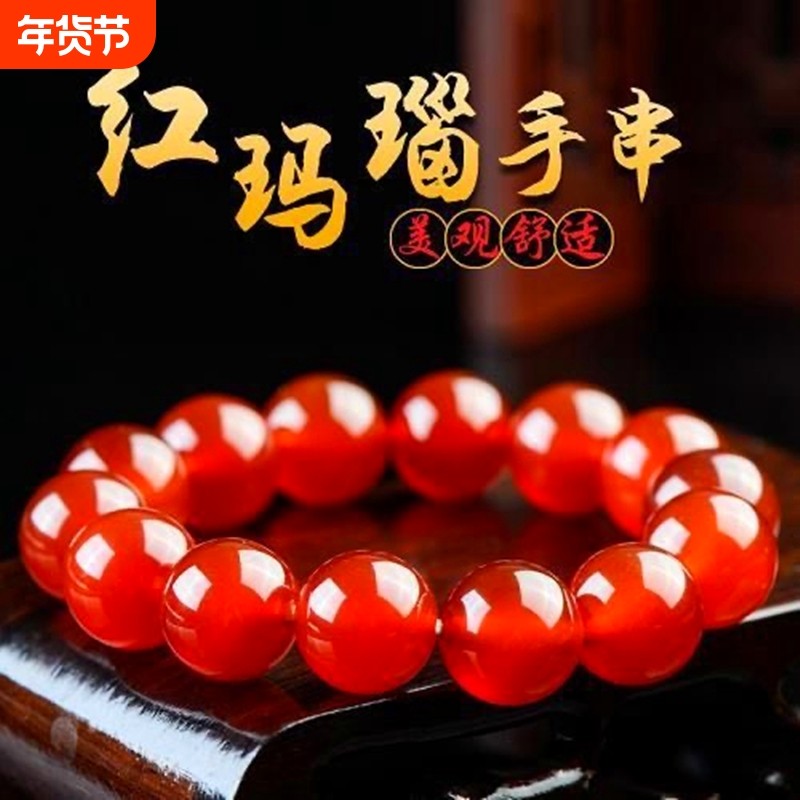 红玛瑙手串水晶玉髓玉石散珠子手镯红色好运手链玛瑙冰种
