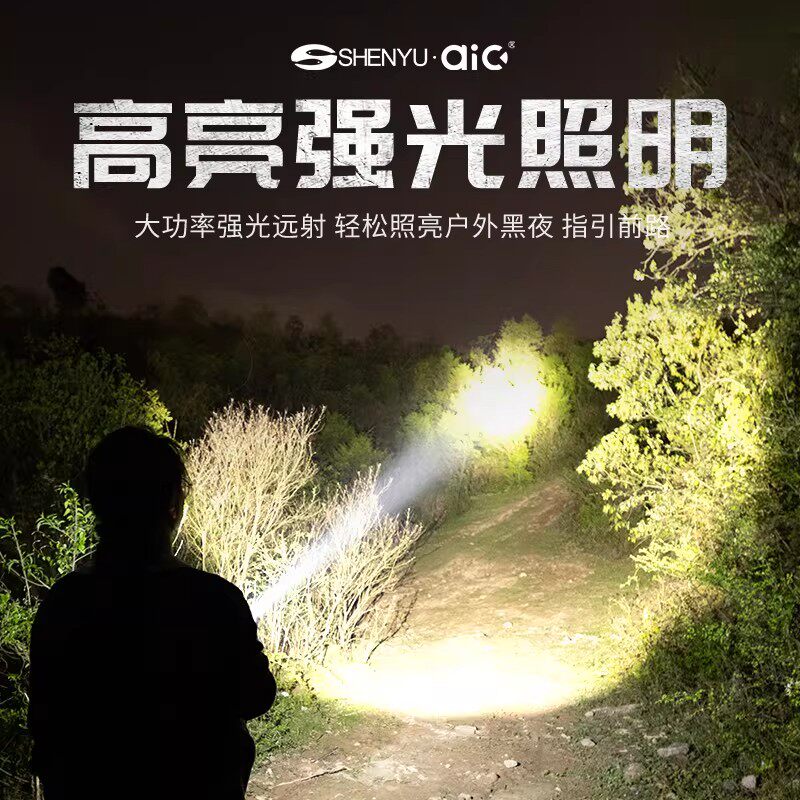神鱼手电筒强光充电超亮小便携远射迷你户外多功能疝气家用灯LED