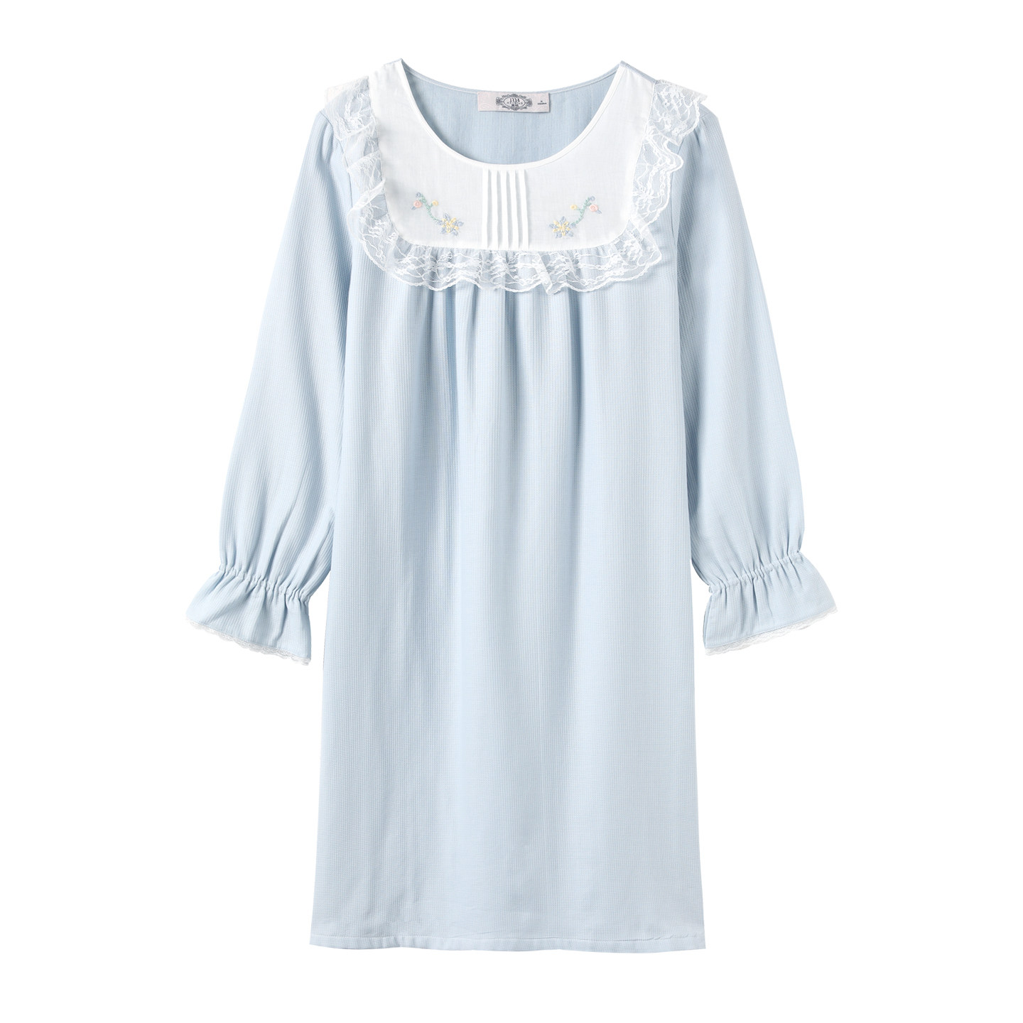 美标新款春秋长袖纯棉睡裙女复古宫廷风甜美蕾丝全棉睡衣家居服冬