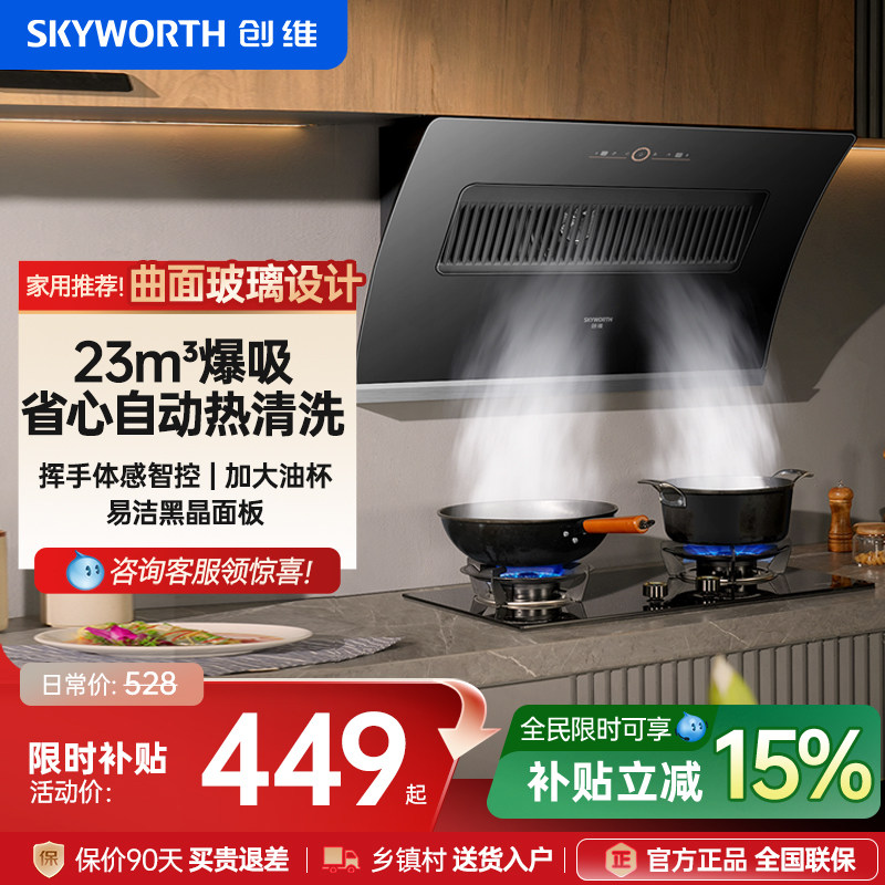 创维Y130侧吸抽油烟机家用厨房大吸力免拆洗超薄吸油机官方旗舰店