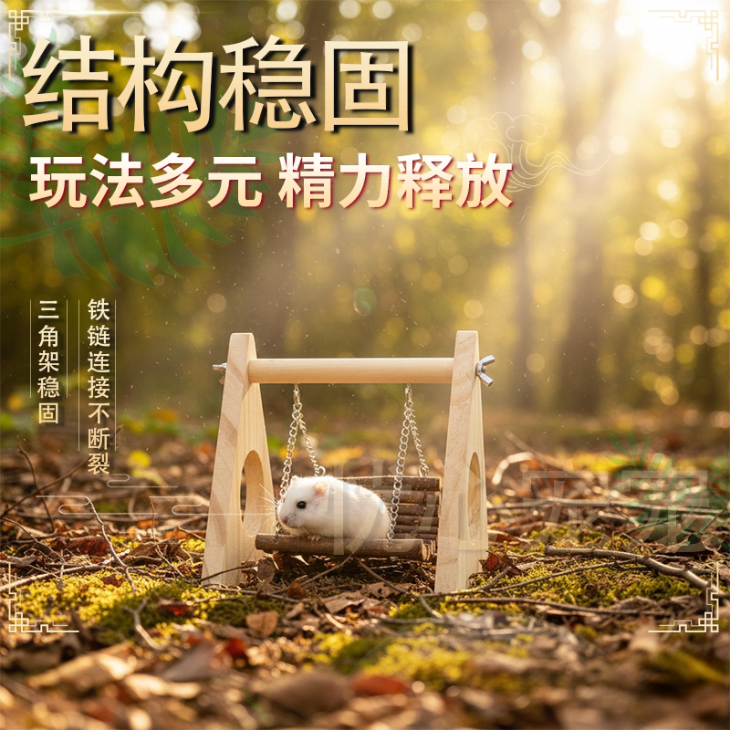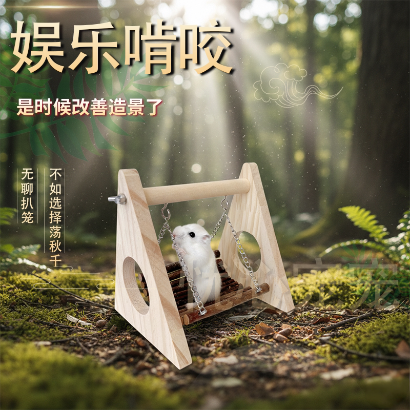 木质仓鼠玩具秋千吊床金丝熊穿梭玩耍树洞小宠磨牙造景用品乐趣多