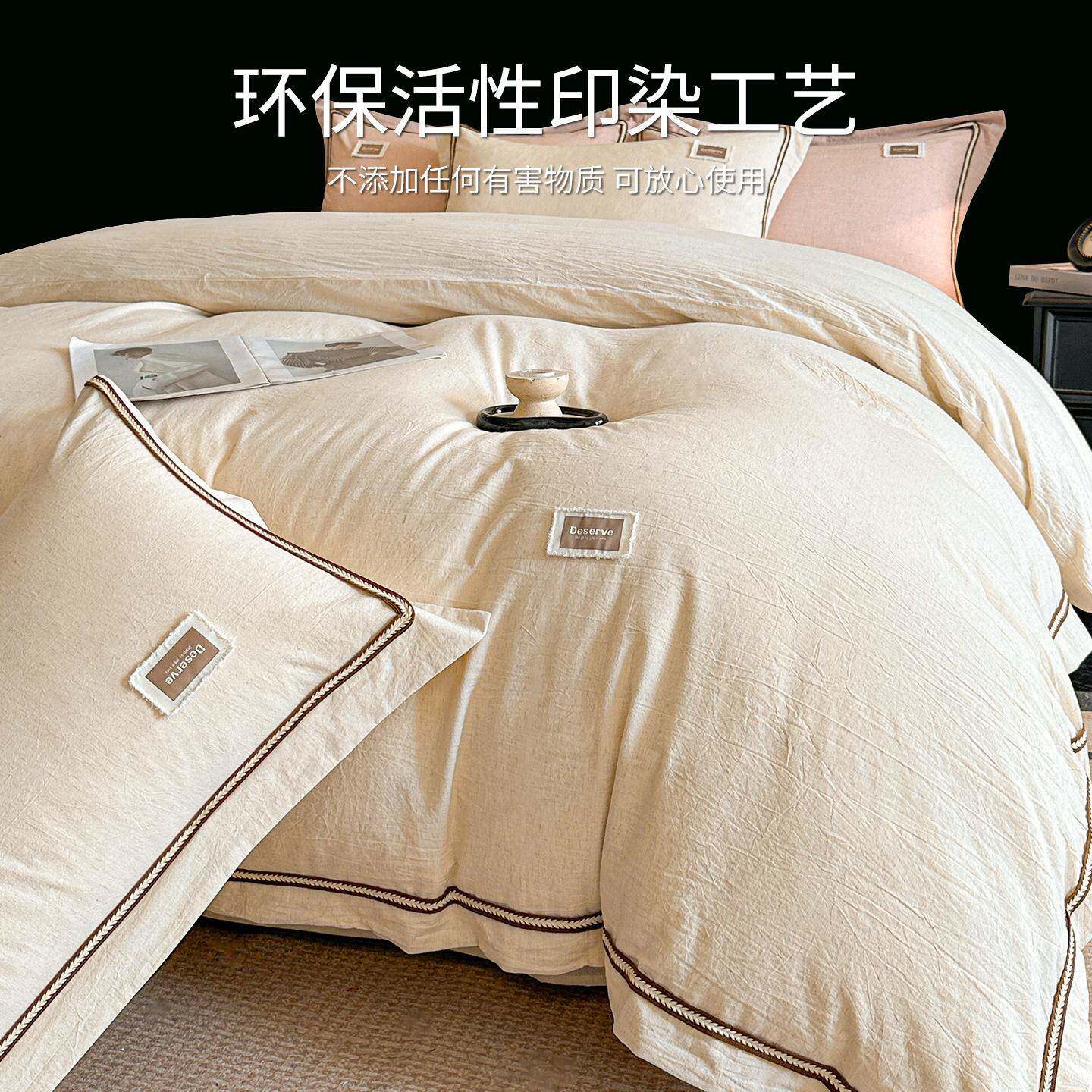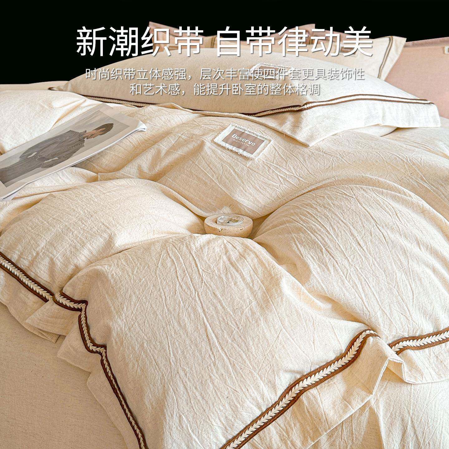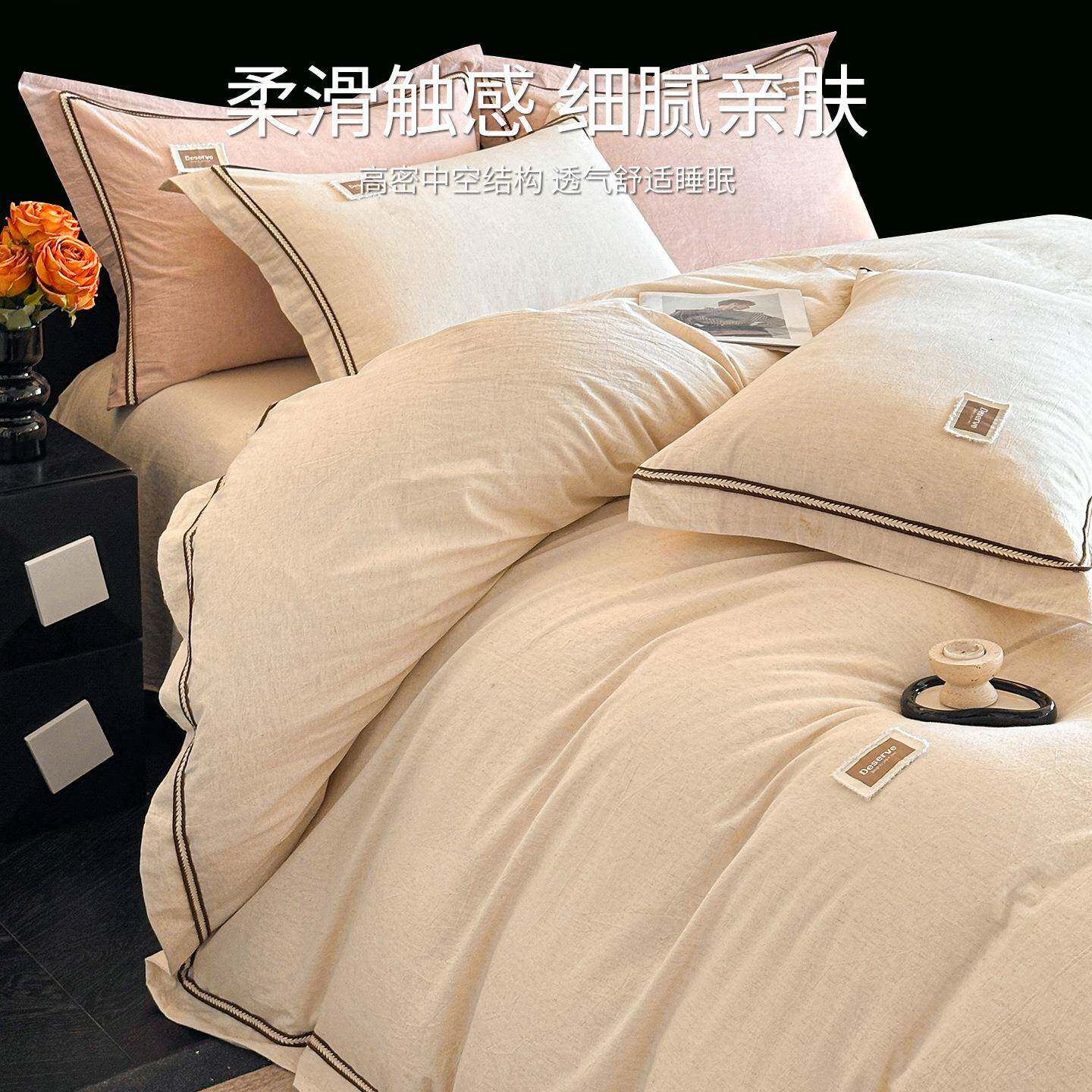 A类全棉棉麻四件套纯棉床单被套床上三件套家用被单床笠床品套件