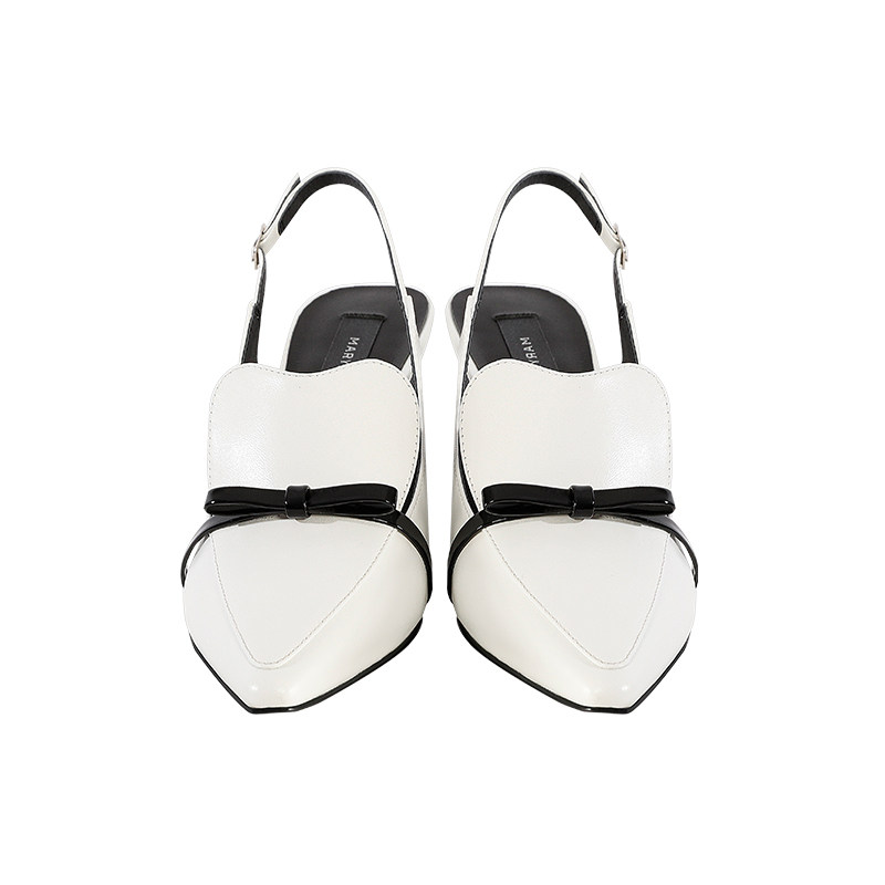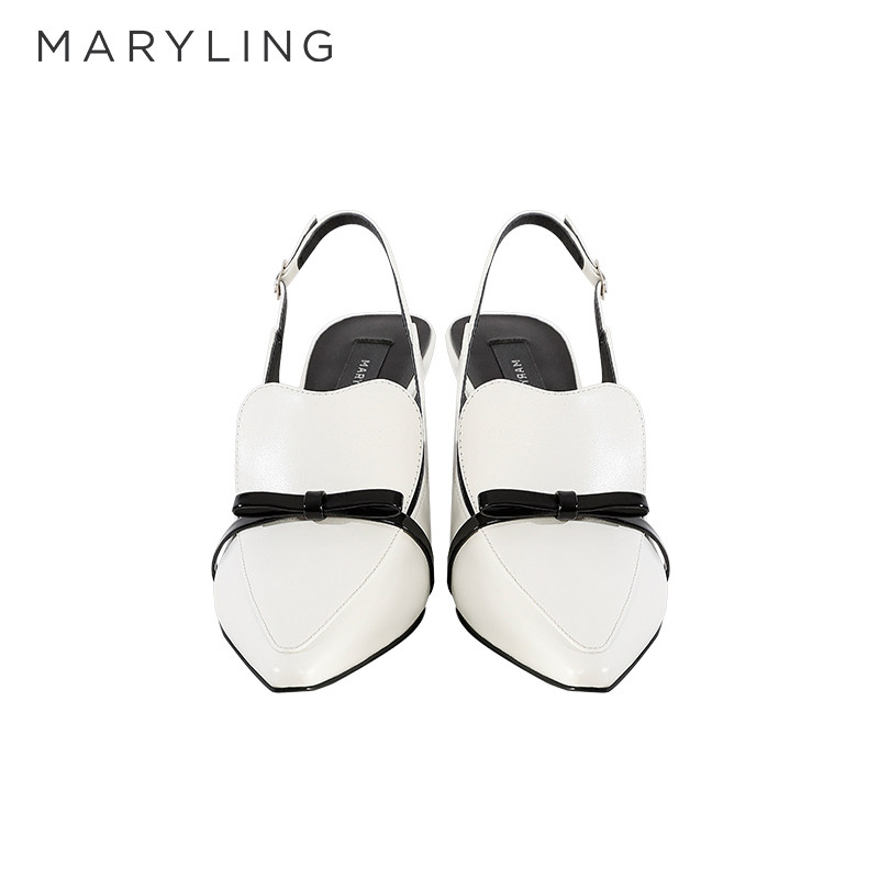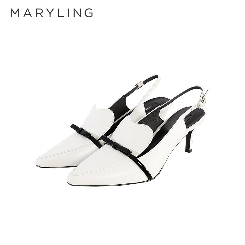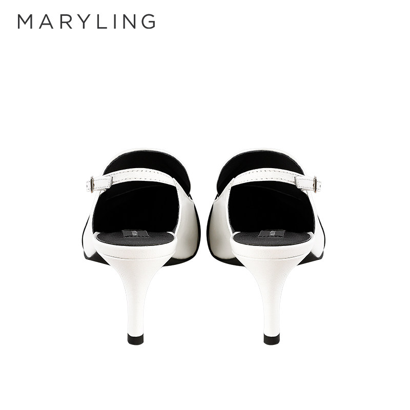 MARYLING玛俪琳春夏季法式黑白拼接中跟尖头皮凉鞋A8CAWSB001
