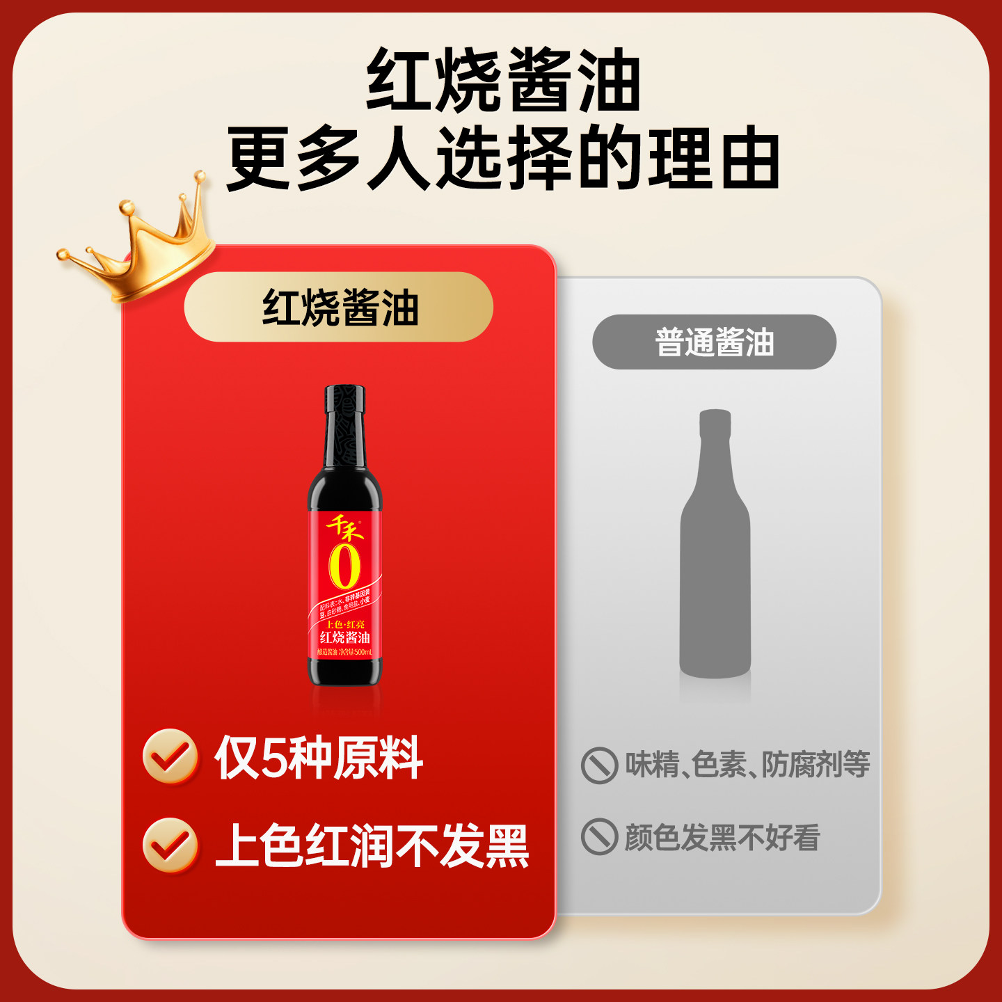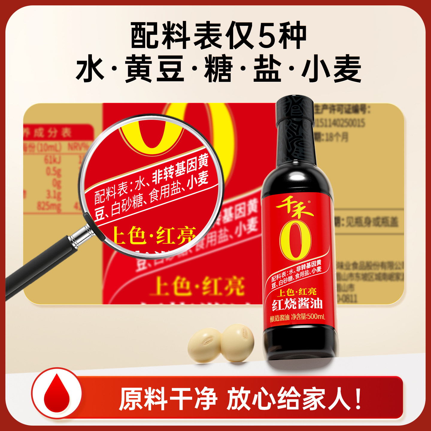 千禾酱油上色红烧酱油500ml厨房调味品炒菜红烧红亮酿造家用黄豆