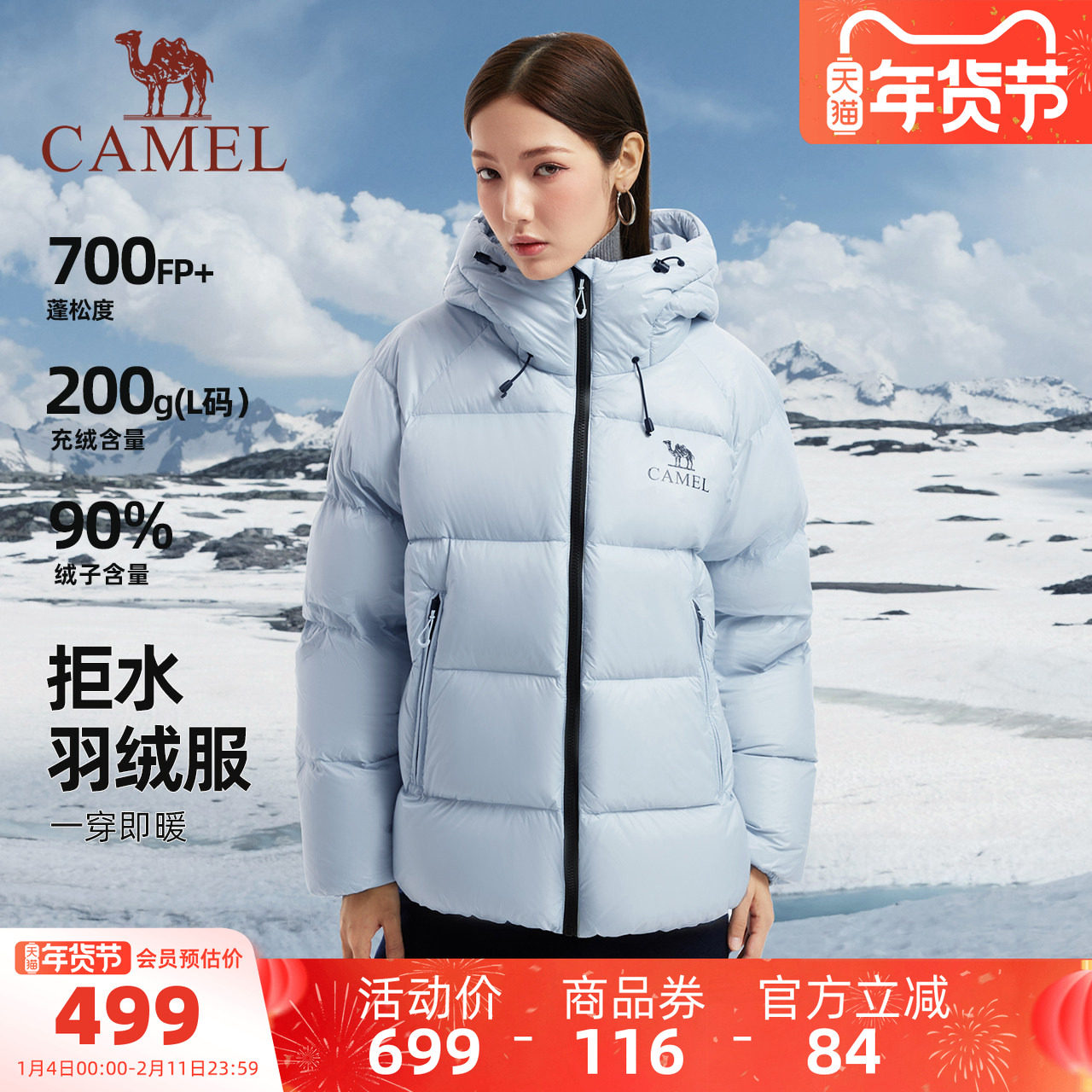 骆驼火山羽绒服女装2025秋冬新款防寒短款加厚保暖防风连帽外套男