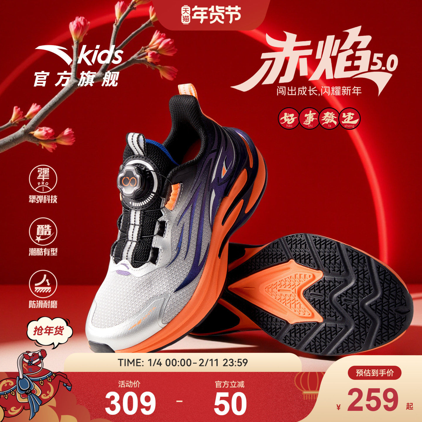 安踏儿童运动鞋男童赤焰跑鞋2025新款男童专业跑鞋纽扣鞋童鞋