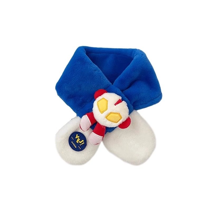 卡通超人毛绒儿童围巾秋冬季加厚婴儿保暖防风男女宝宝交叉围脖套
