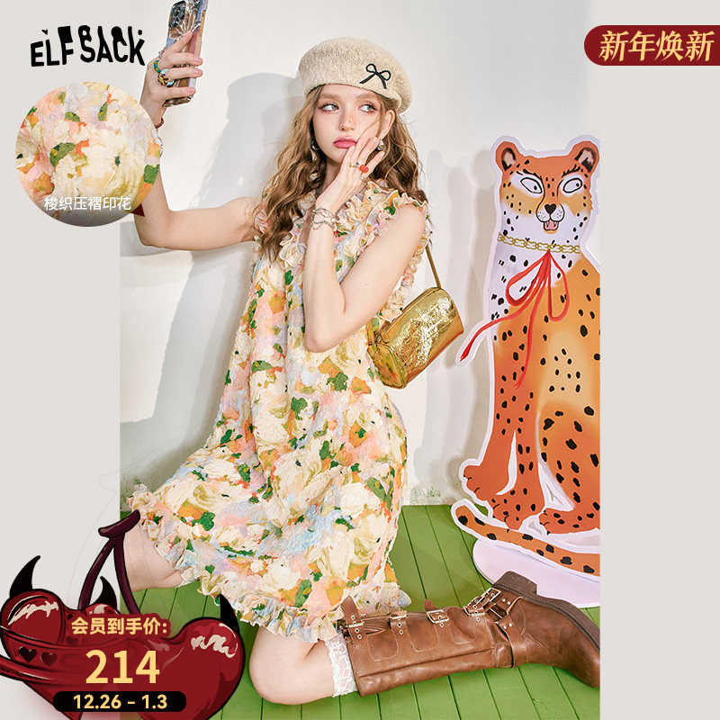 妖精的口袋木耳边碎花无袖连衣裙女2025年夏季新款度假风出游穿搭