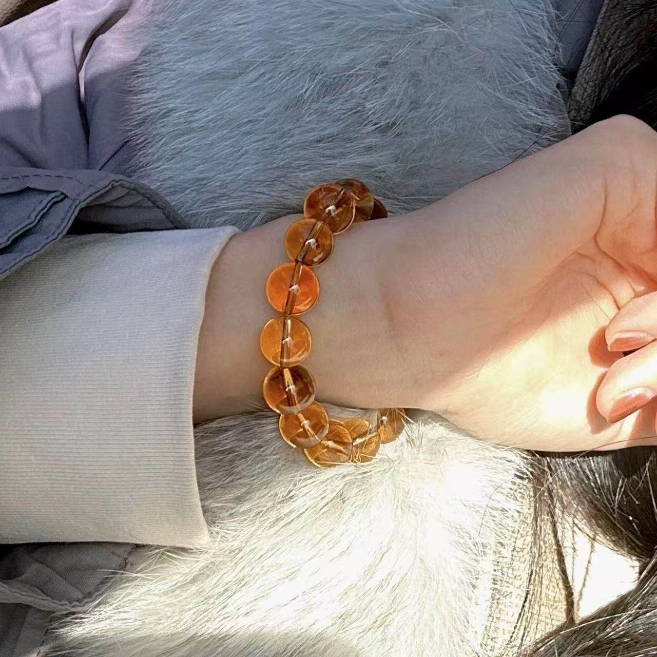 新款手链女高级感显白人造黄水晶手串时尚气质百搭高颜值转运珠