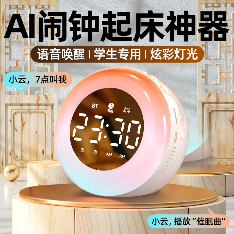 蓝牙音箱多功能无线音响学生闹钟智能学习电子静音床头闹铃带夜光