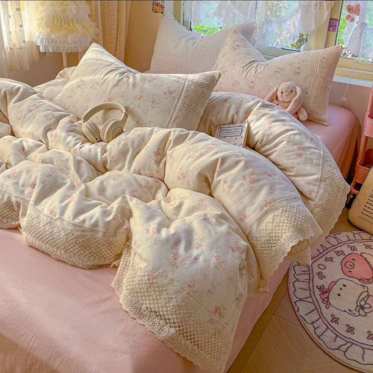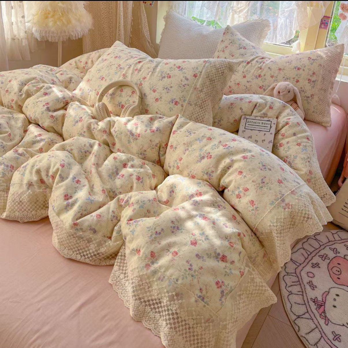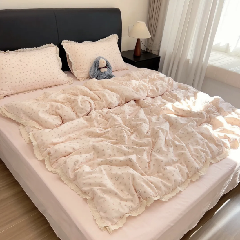 A类双层纱床上四件套纯棉全棉新款田园床单件被套被罩宿舍三件套4