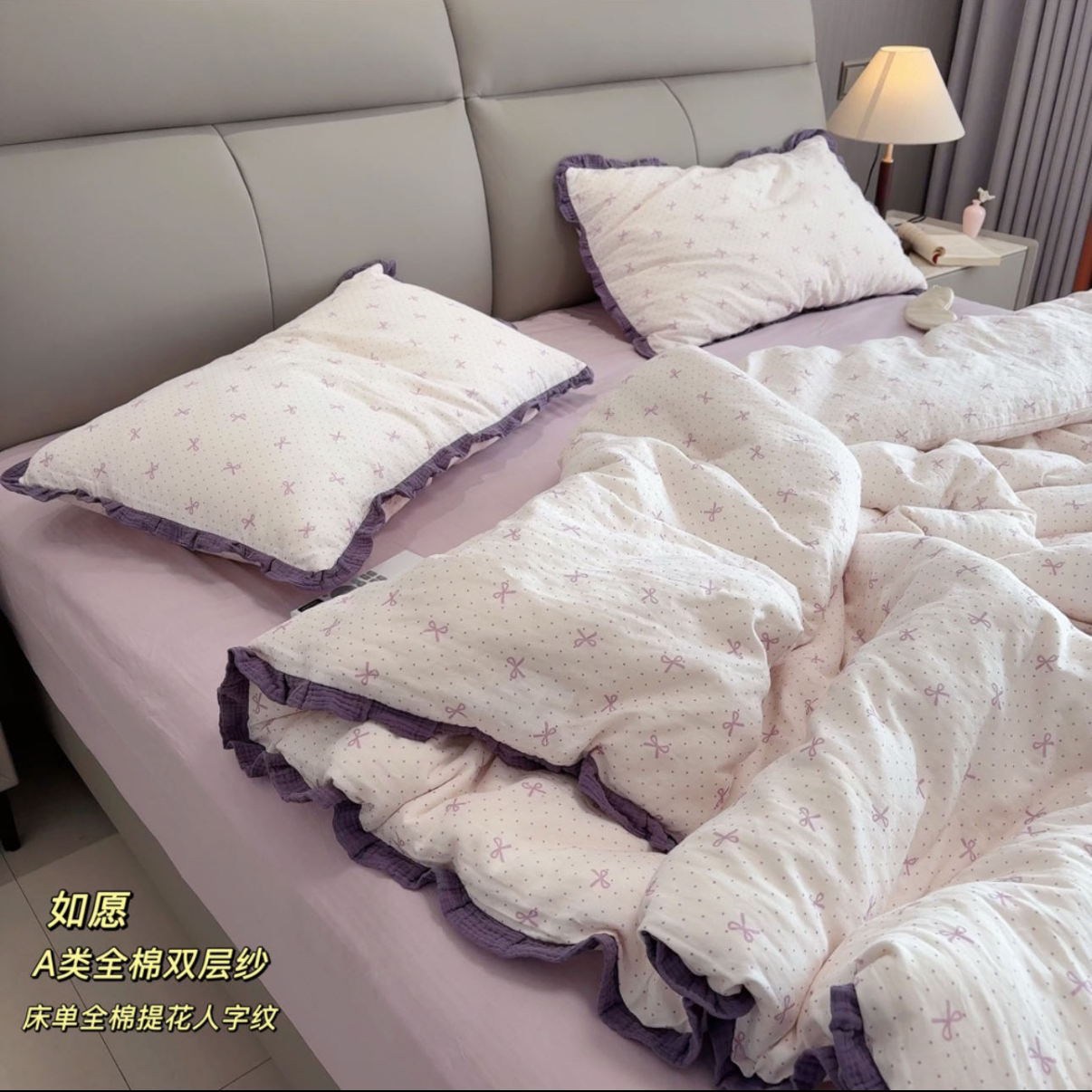 A类纯棉双层纱布四件套新款床上全棉被罩被套床单学生宿舍三件套4