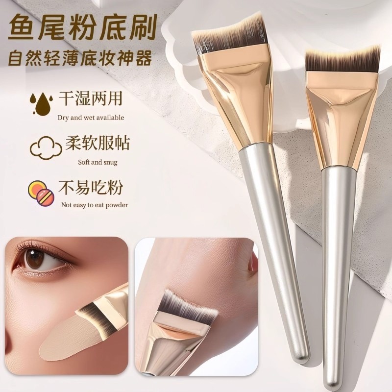 超薄底妆神器一字鱼尾粉底刷无痕不吃粉上妆友好刮板化妆美容调色