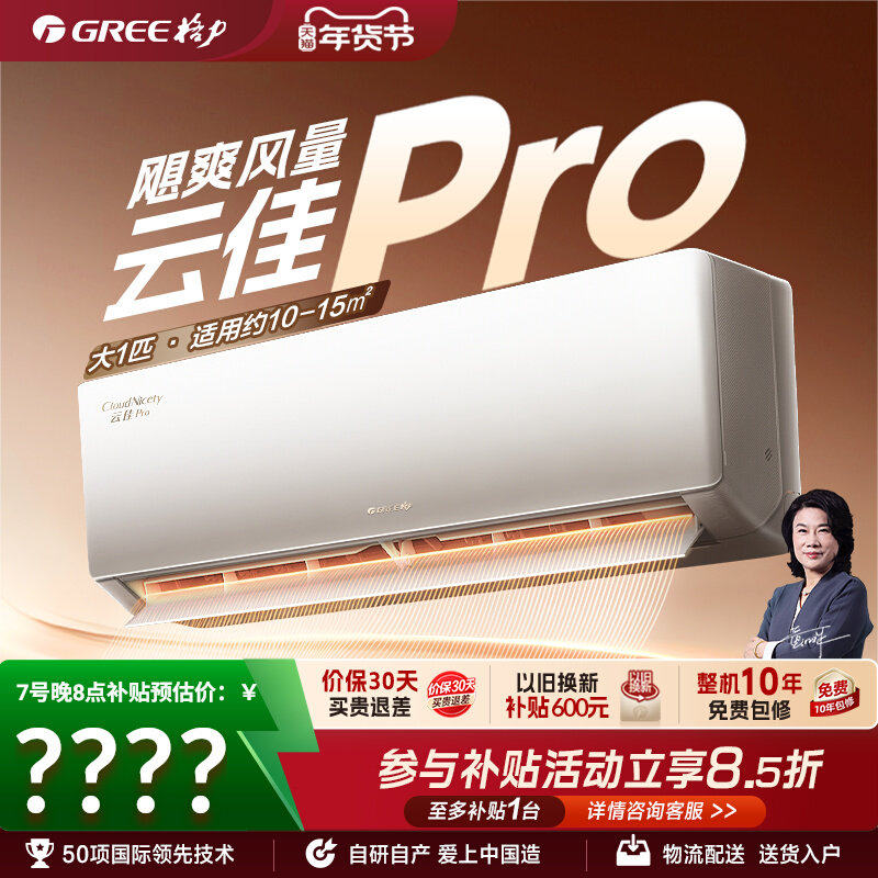 格力空调官方新一级能效大1匹变频冷暖卧室家用节能省电挂机云佳