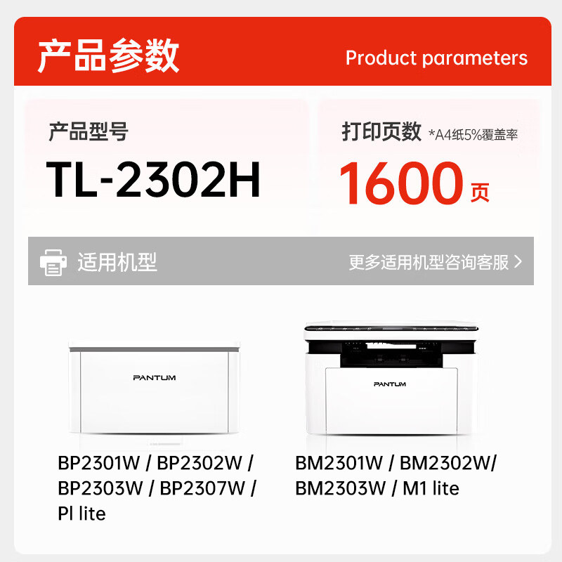 奔图旗舰店TL-2302H原装硒鼓M1碳粉盒墨盒适用于BP2302W BP2307W BM2302W 2303W BM2307W BM2301W P1 lite