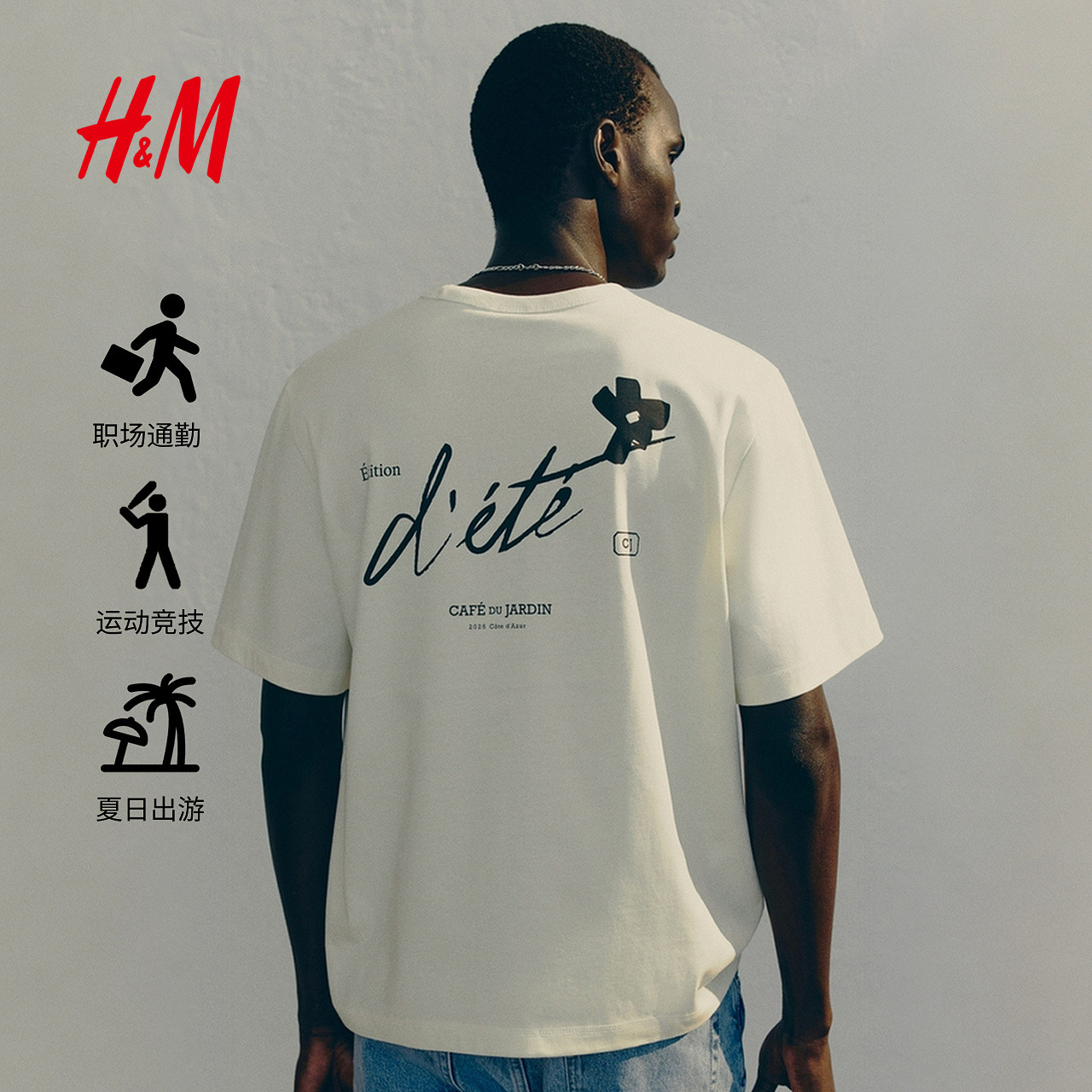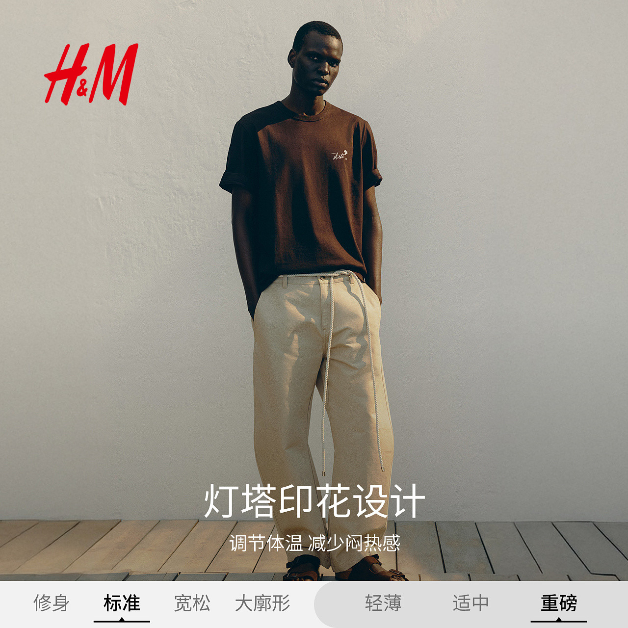 HM男装女装T恤春季情侣装COOLMAX®凉感灯塔印花重磅上衣1216501